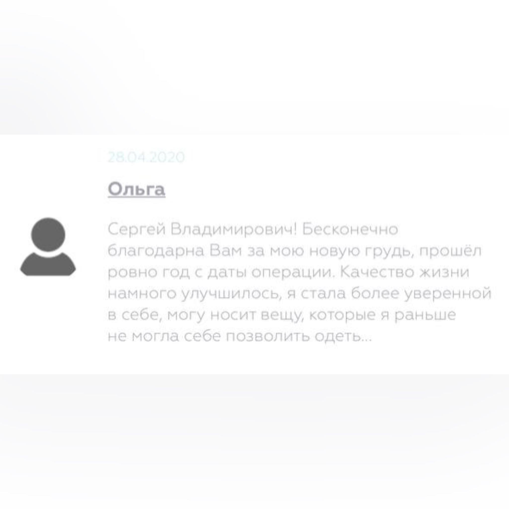«Сергей Владимирович! Бесконечно благодарна Вам за мою новую грудь, прошёл ровно год с даты операции. Качество жизни намного улучшилось, я стала более уверенной в себе, могу носит вещу, которые я раньше не могла себе позволить одеть...» Каждый раз приятно видеть, что у девчонок не просто жизнь меняется, а качество!