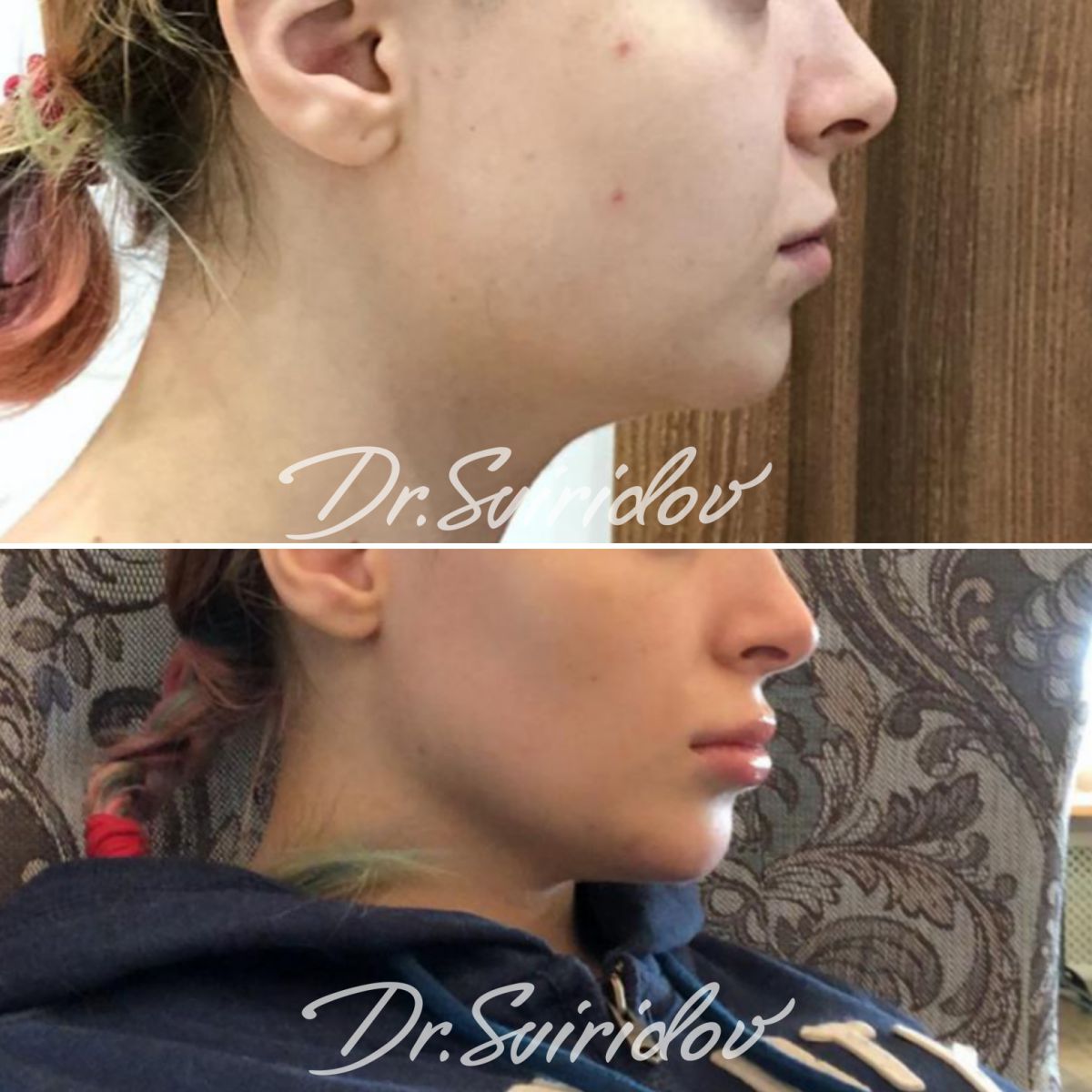 Выполнен липофилинг губ и подбородка.