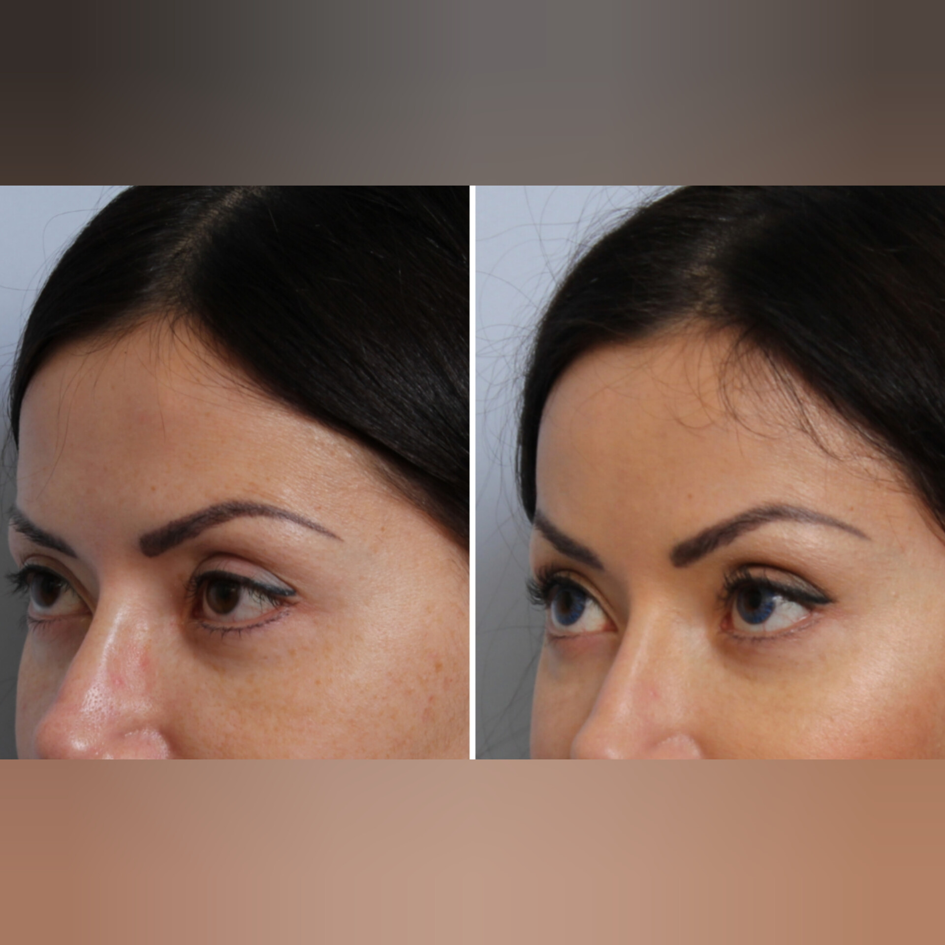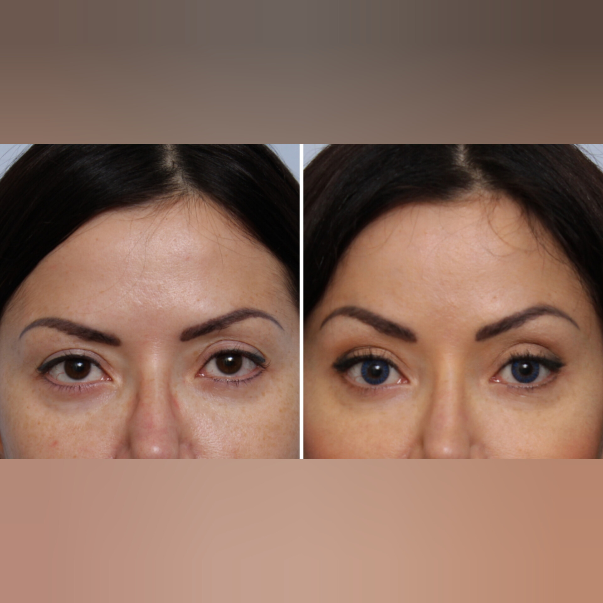 Но, иногда, в силу анатомических особенностей, как у данной пациентки, даже в юном возрасте - существует проблема "грустного взгляда". И это совсем не признаки старения.