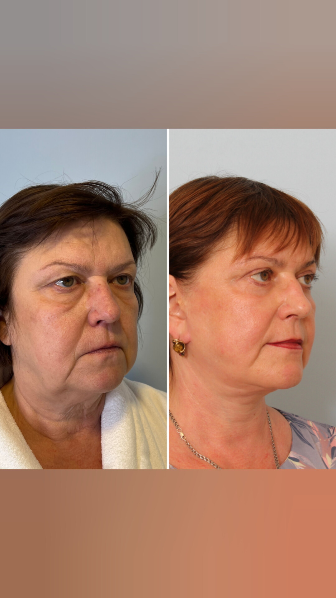 Нет, на самом деле это одна и та же пациентка, просто после выполнения пластики лица. Ей выполнено: