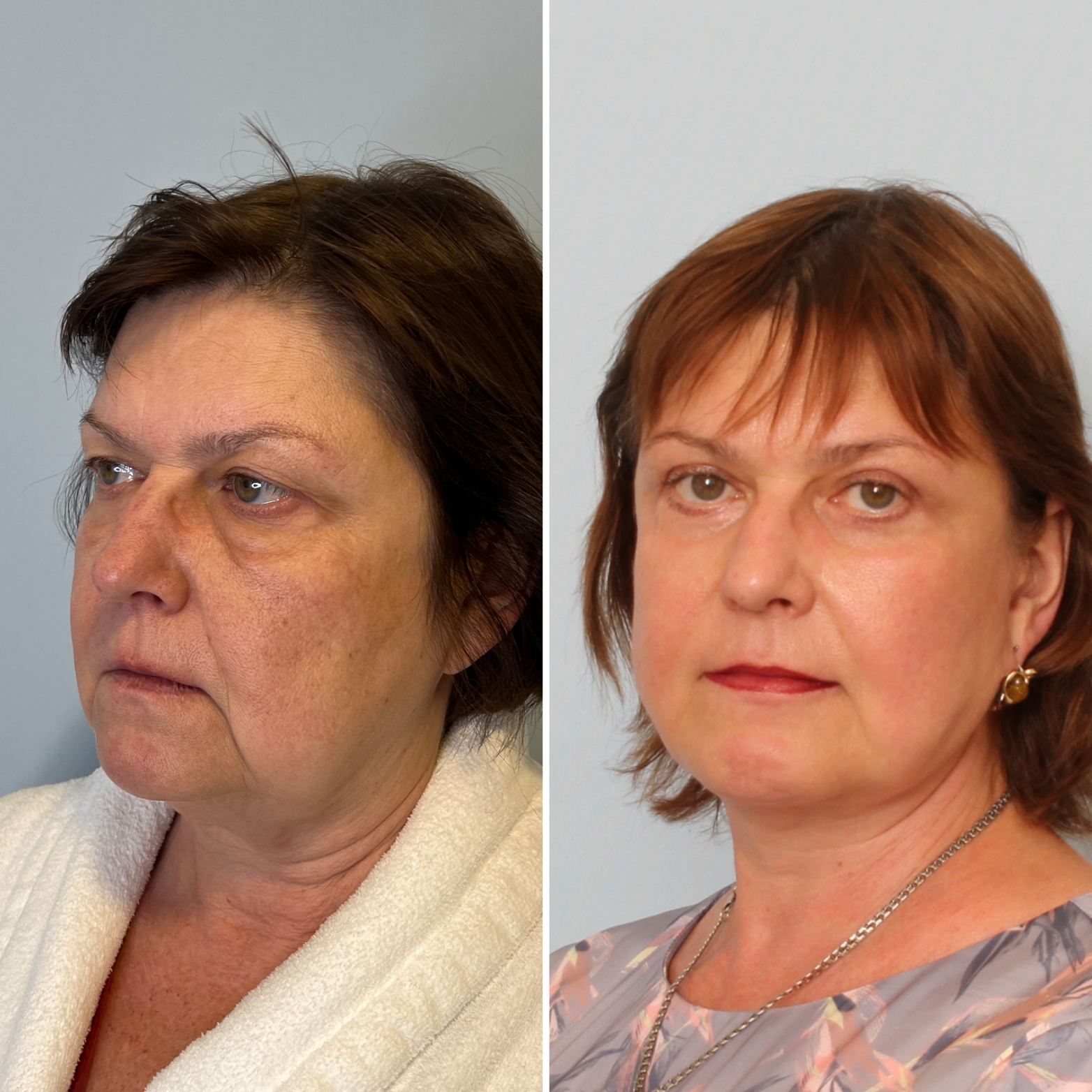 Нет, на самом деле это одна и та же пациентка, просто после выполнения пластики лица. Ей выполнено