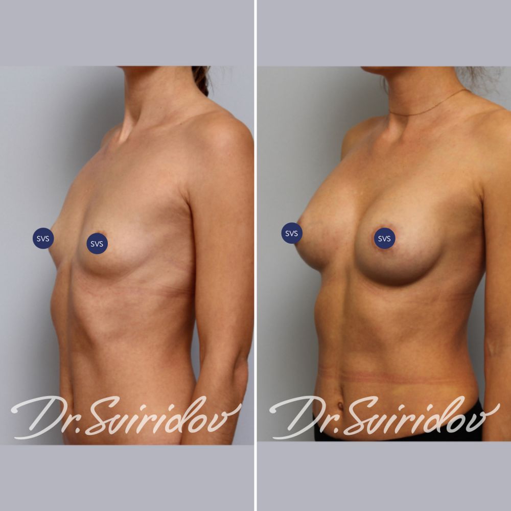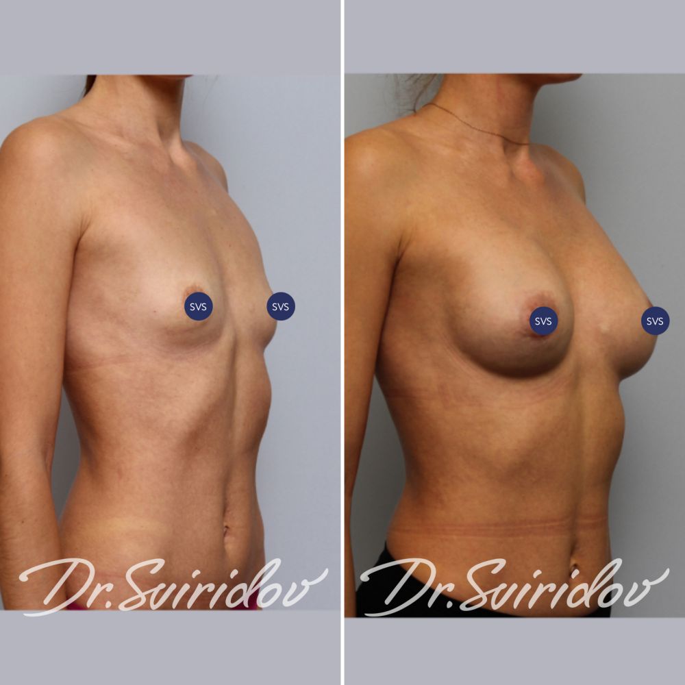 После увеличение груди прошло 2 года. Установлены имплантаты анатомической формы, объемом 335 мл.
