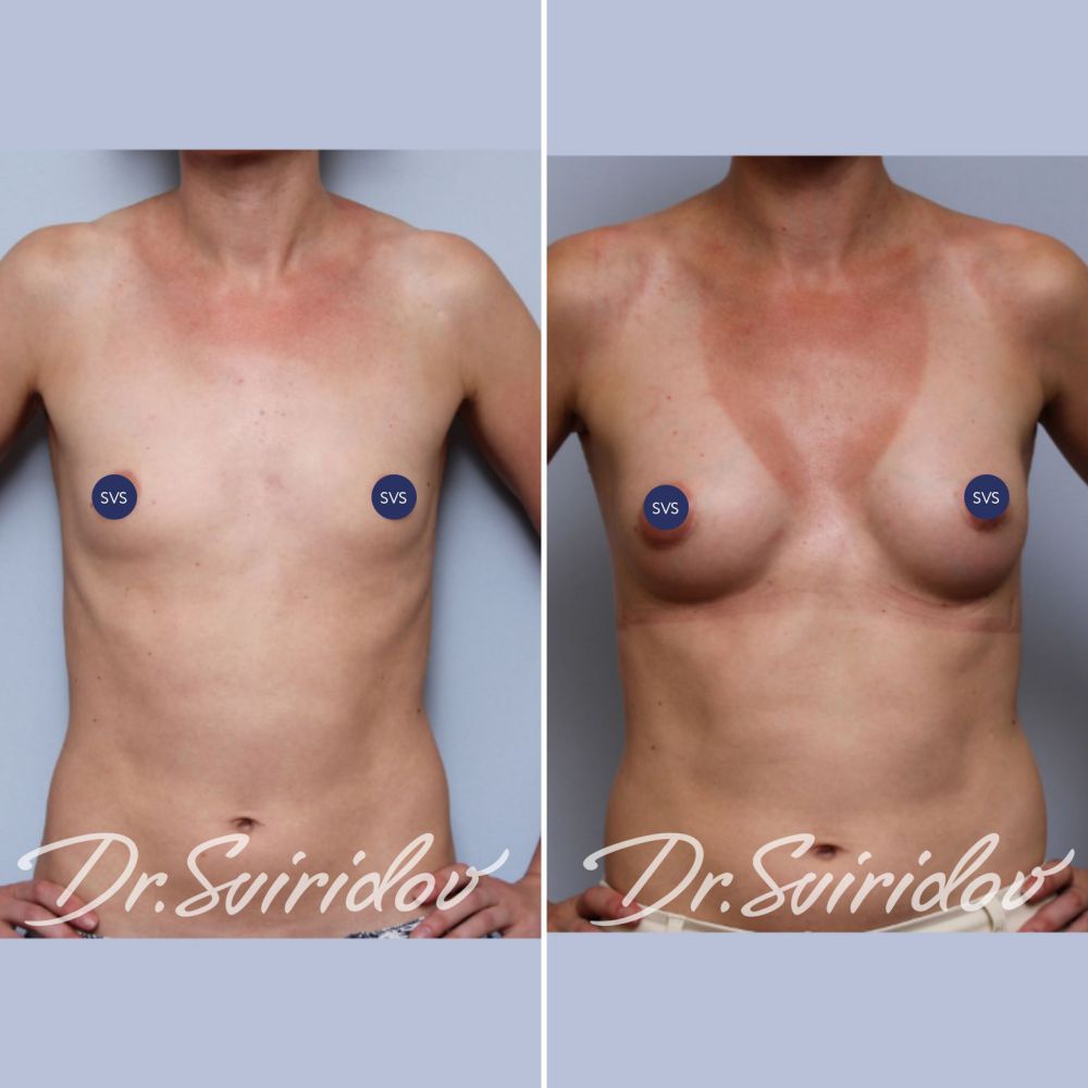 Выполнено увеличение груди по методике «Грудь без шва»
