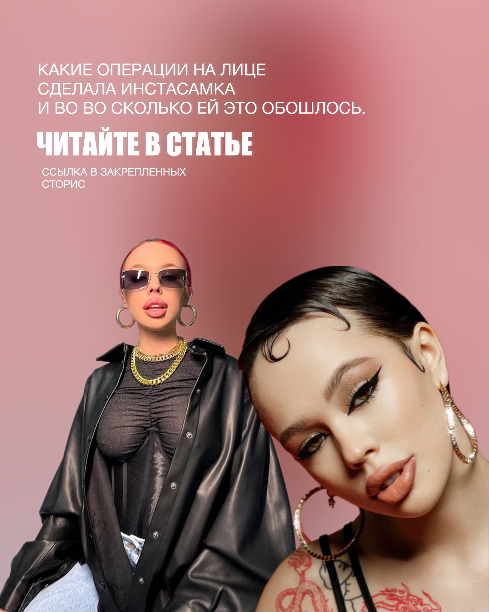 Рассказал о том, какие операции на лице сделала Инстасамка и во сколько ей это обошлось. Читайте все подробно в статье https://www.passion.ru/news/spletnichaem/potratila-milliony-na-neudachnuyu-plastiku-kak-menyalas-vne...