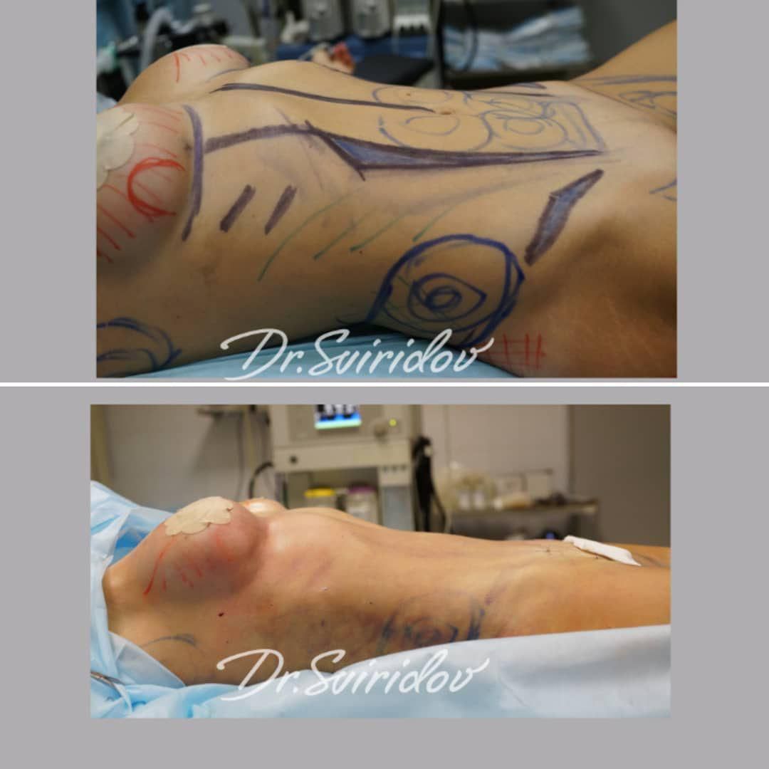 На первом этапе выполняется карта рельефа, которая необходима для успешной операции. Разметка в операционной помогает четко видеть границы мышц и сформировать естественный рельеф в соответствии с анатомическими особенностями строения тела.