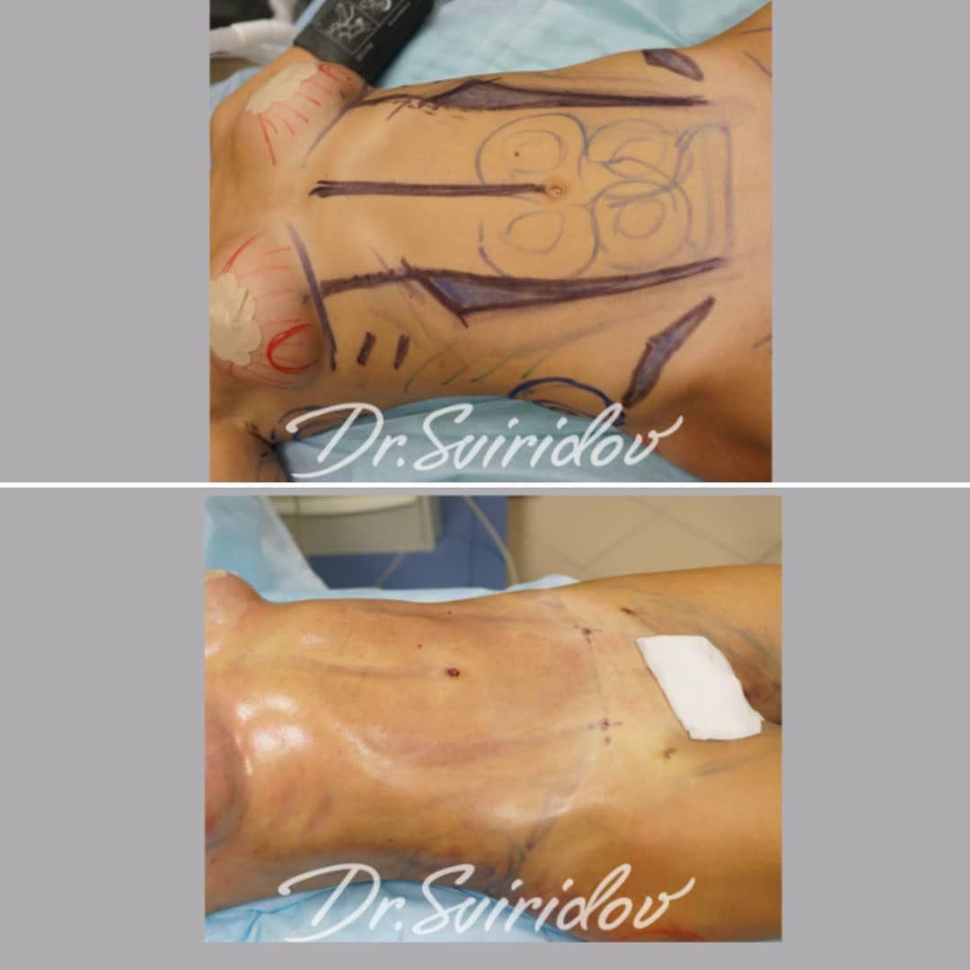 Липоскульптурирование производится специальной канюлей и ультразвуковым зондом. С помощью ультразвука убирается весь жир с талии, что способствует формированию естественного изгиба талии.