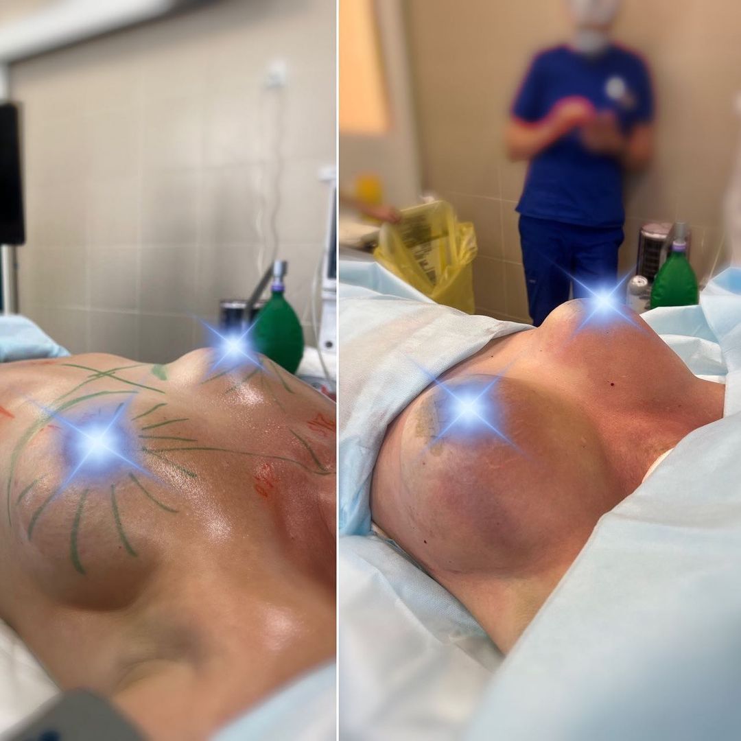 Получился шикарный, естественный результат с хорошей проекцией. На фото выражен отёк, но скоро он сойдёт и пациентка будет очень довольна своей новой формой груди❗️