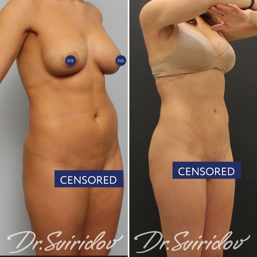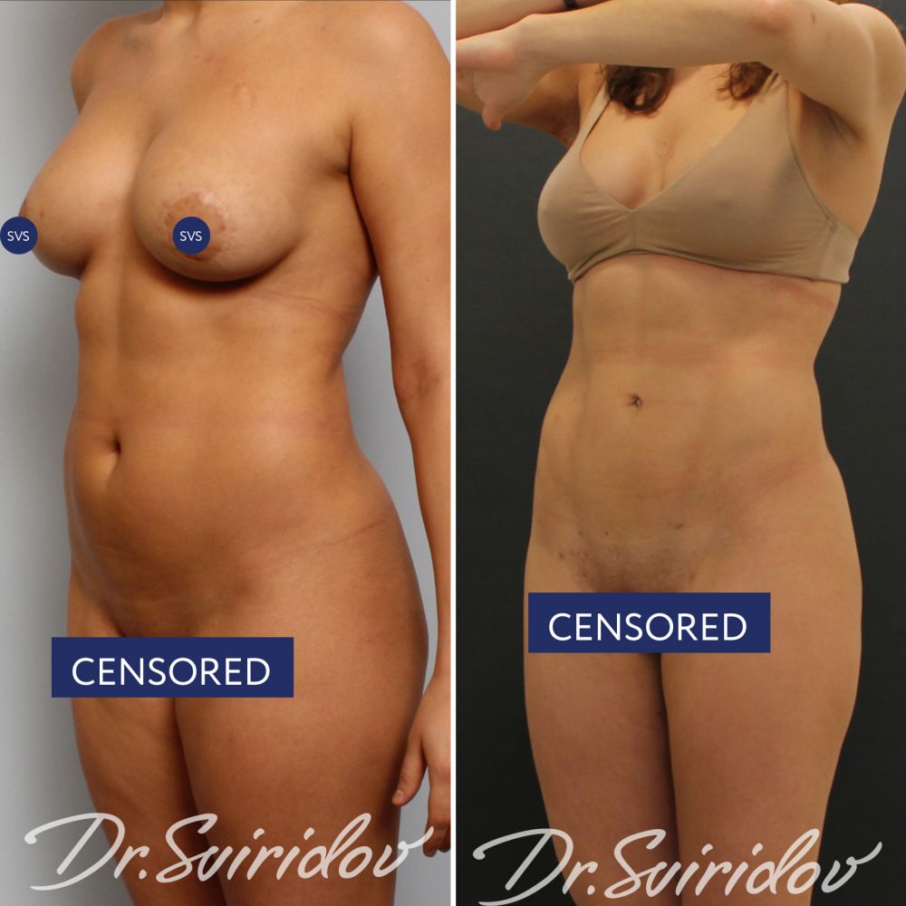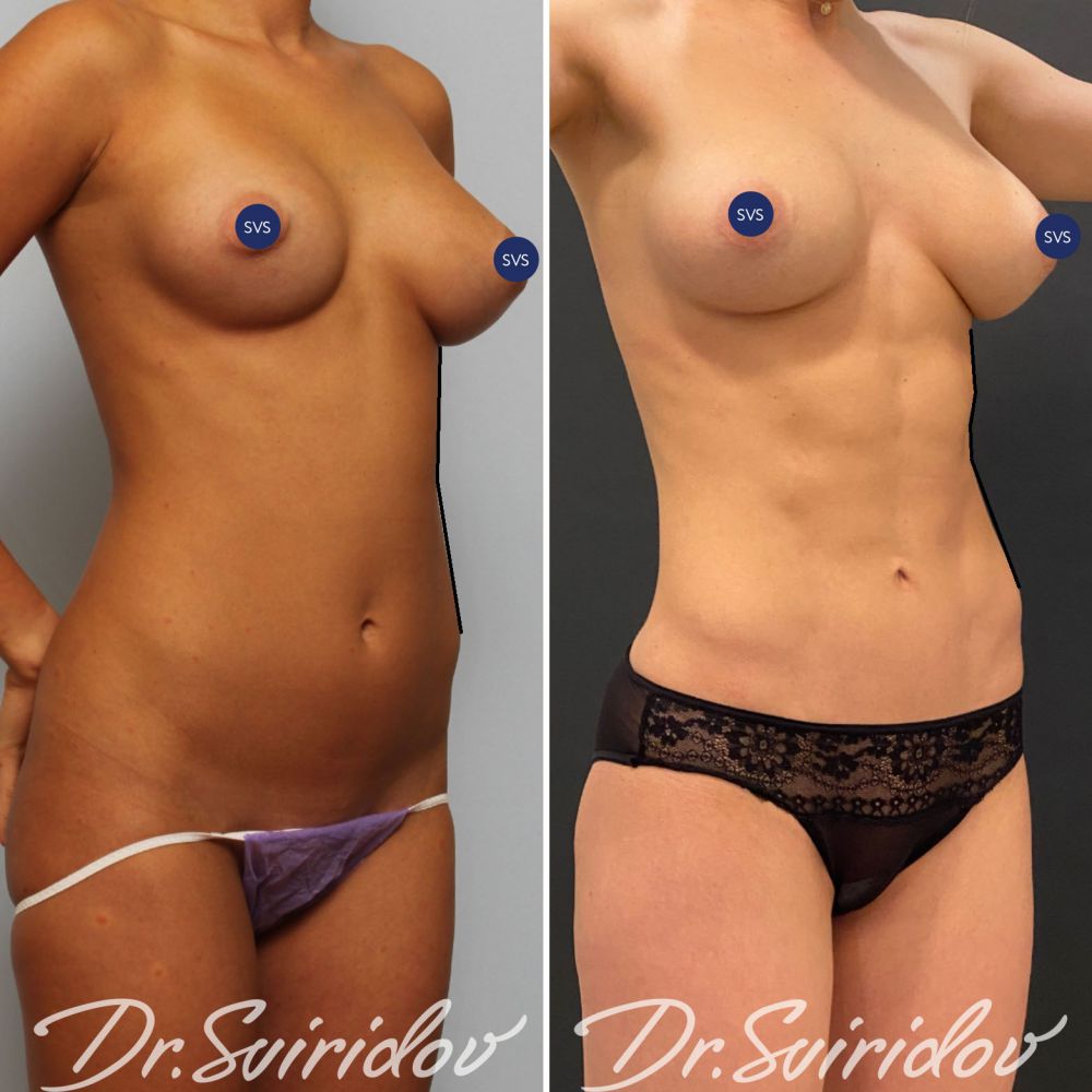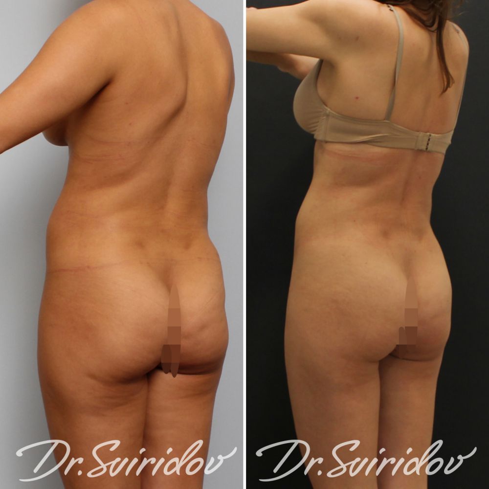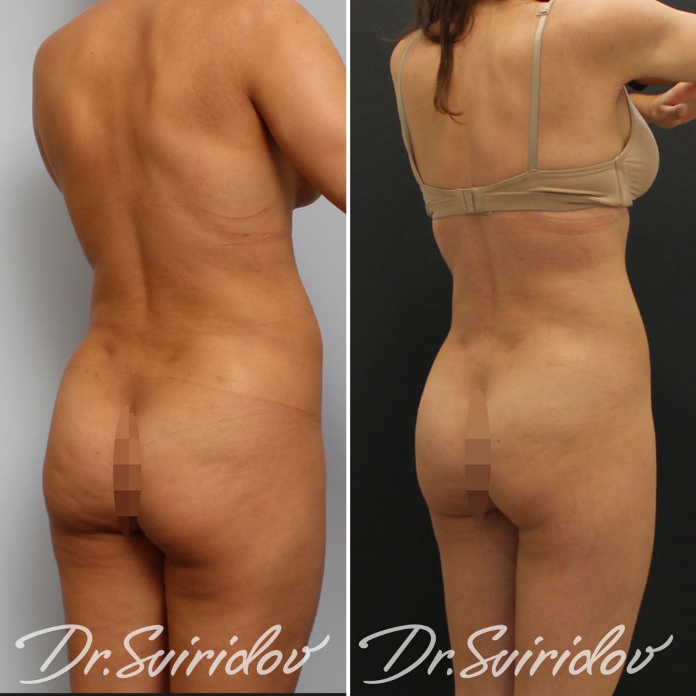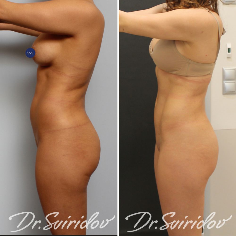 Выполнено липоскульптурирование живота и липофилинг ягодиц.