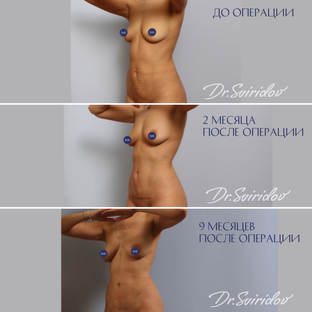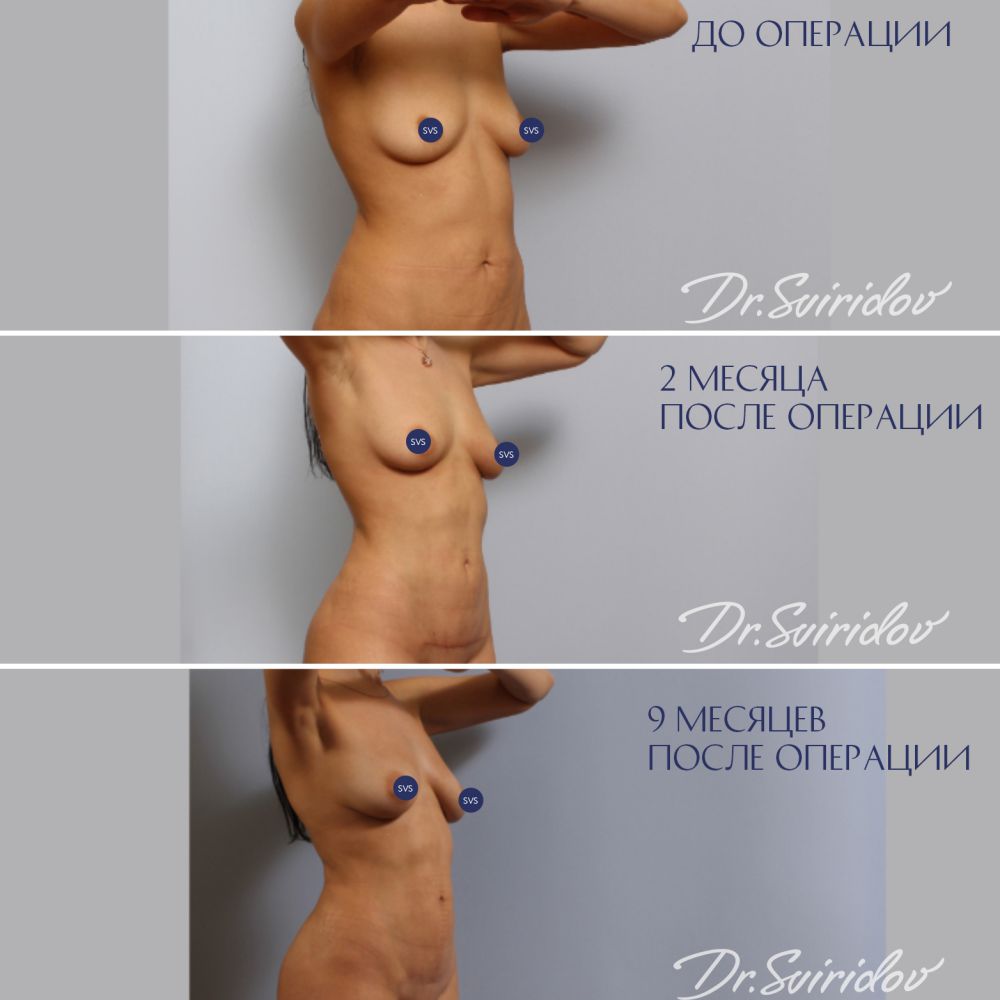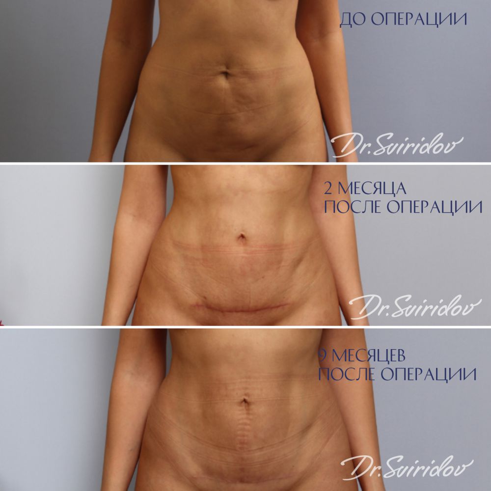 Выполнена миниабдоминопластика с элементами бодибилдинг липопластики с ушиванием диастаза прямых мышц живота с удалением избытка кожи внизу живота и формирование в подкожно-жировой клетчатке теней, придающих спортивный вид. Старый рубец после кесарева сечения иссечен.