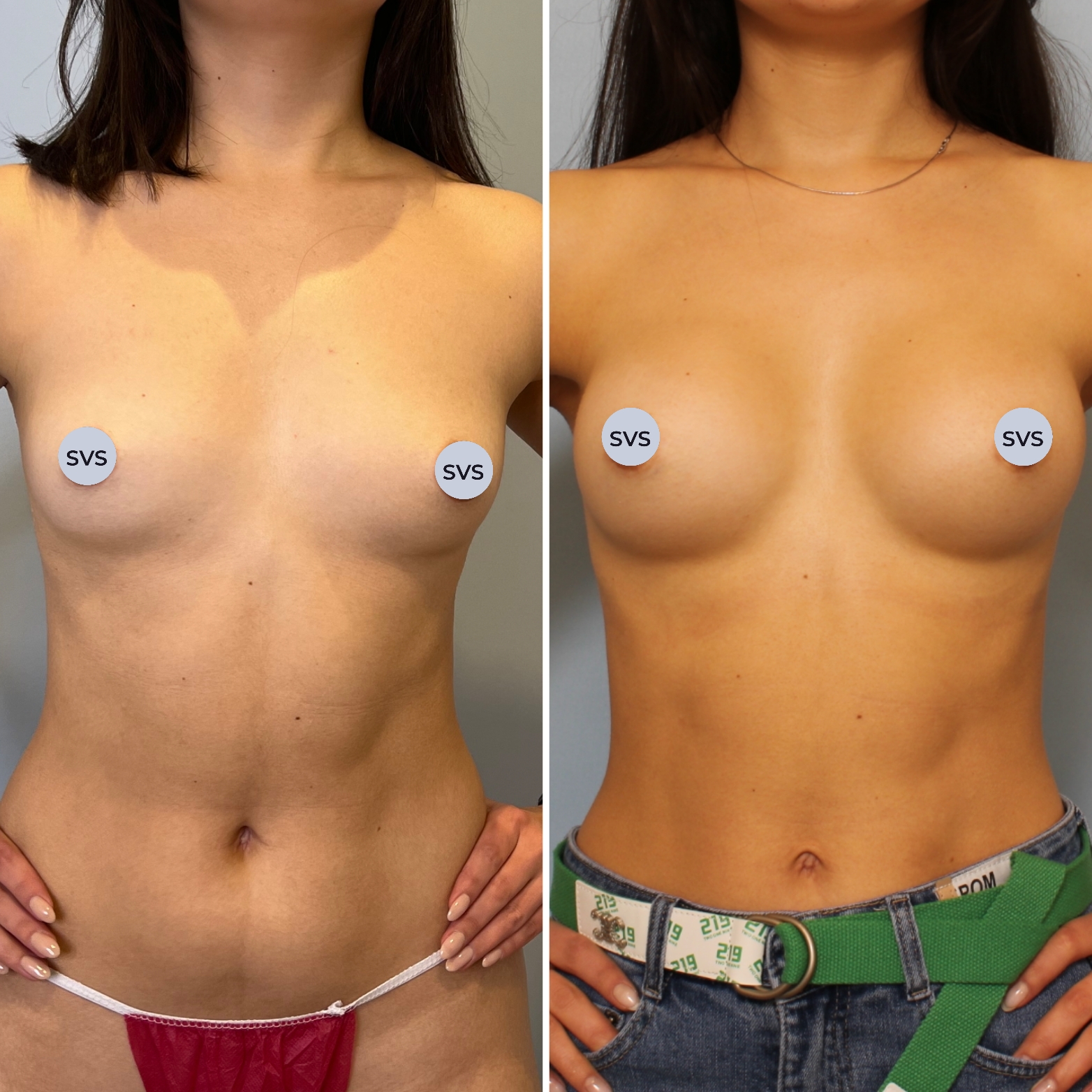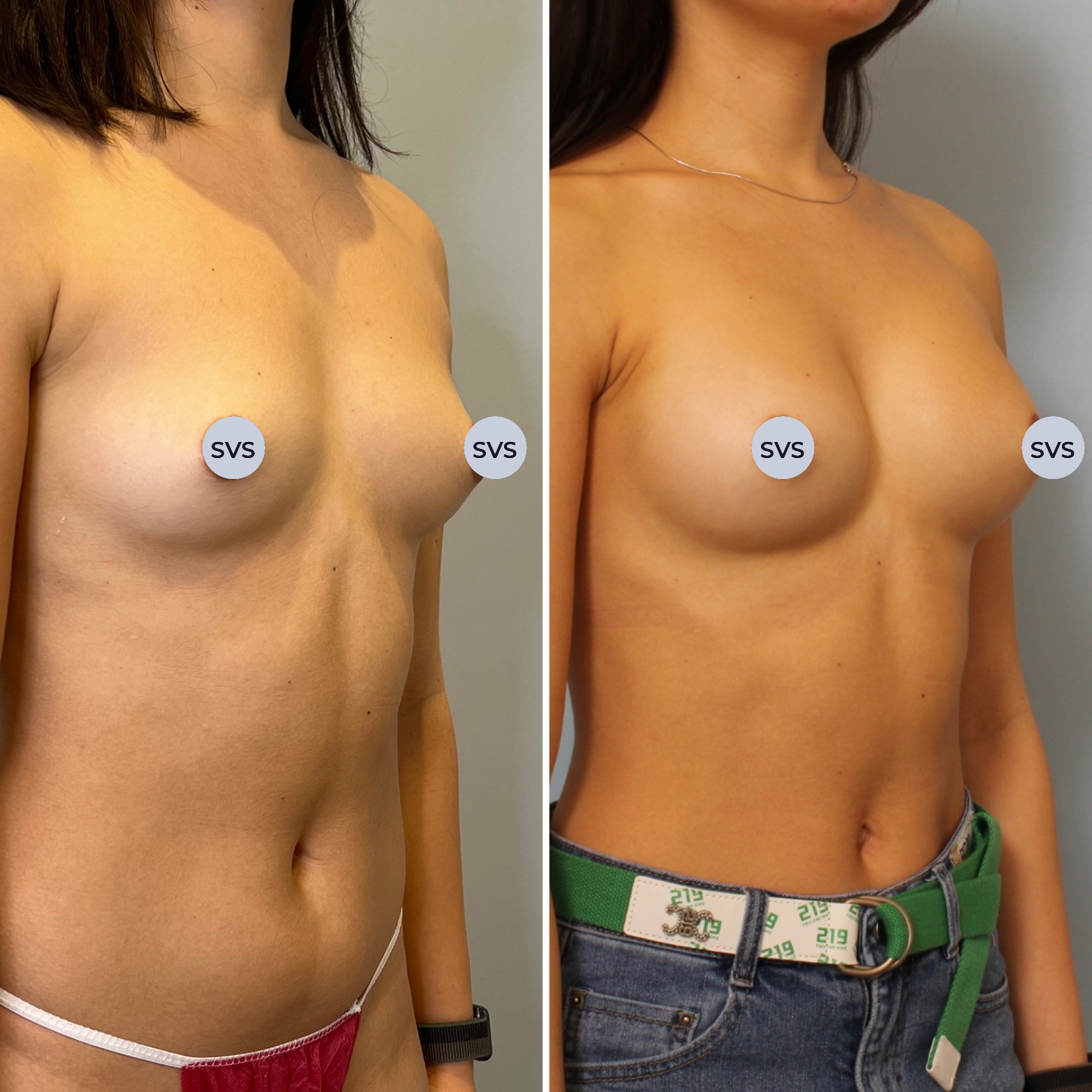 ✔ Установлены анатомические имплантаты объемом 215 мл.