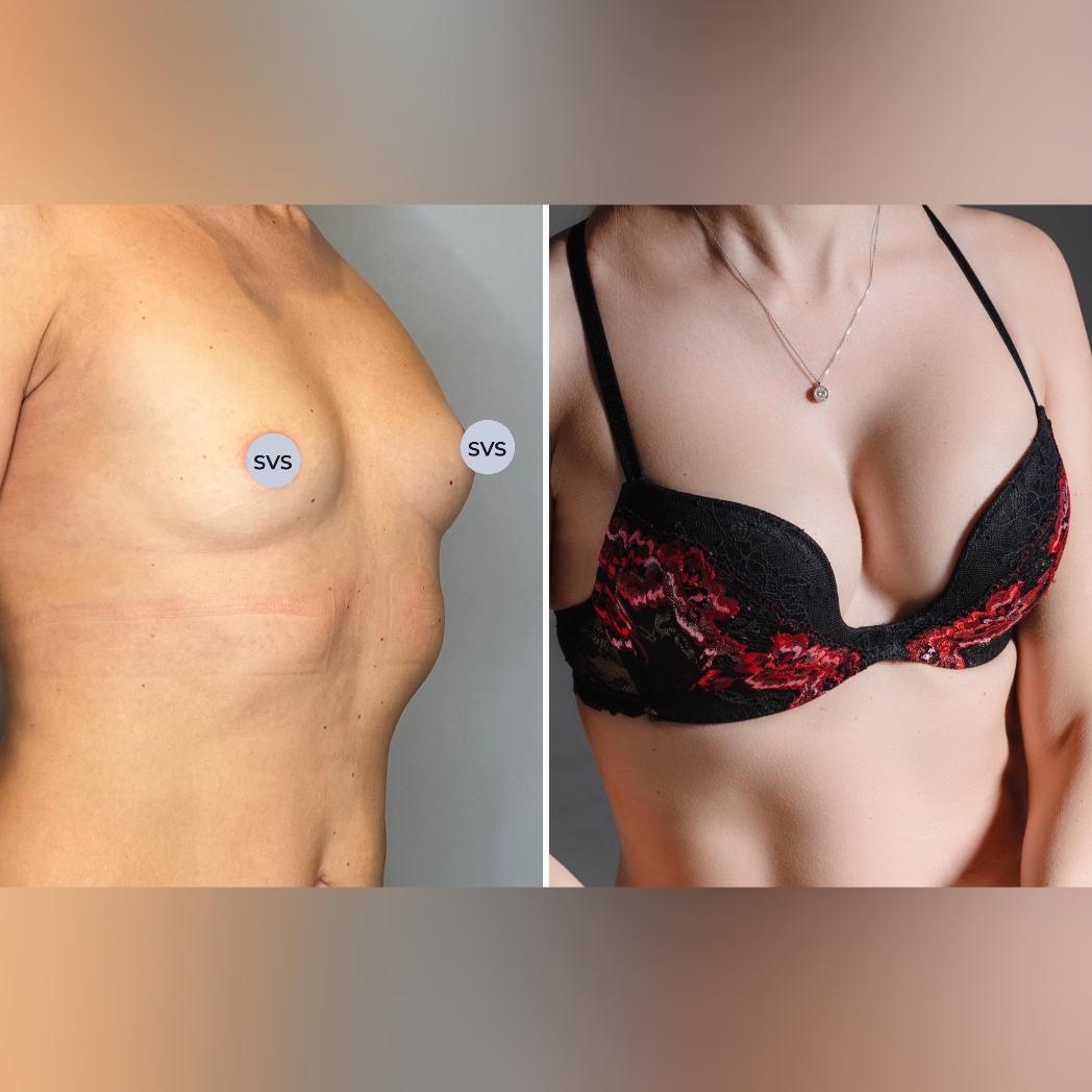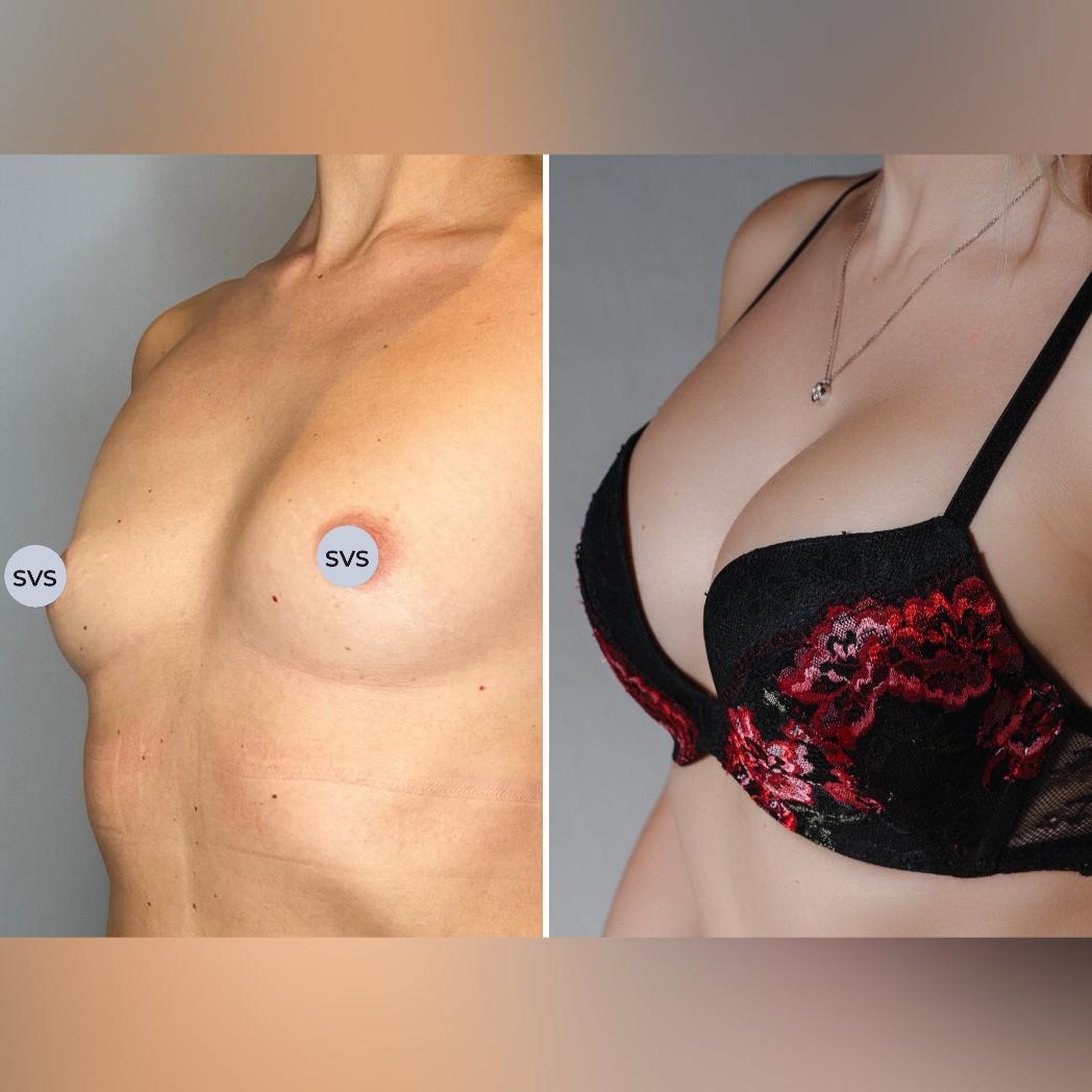 Пациентке выполнено бесшовное увеличение груди. № 21371