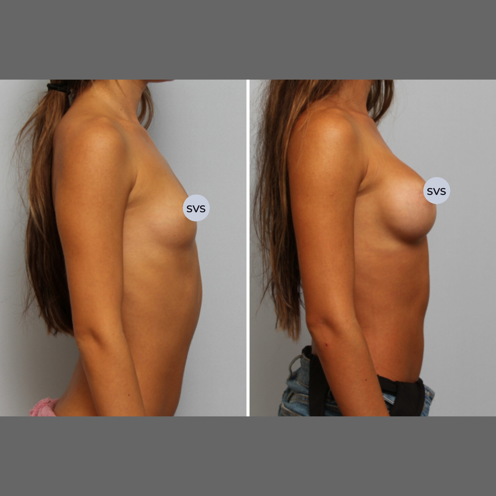 Пациентке выполнил бесшовное увеличение груди (патент 2521346), установил анатомические имплантаты объемом 280 мл. № 18964