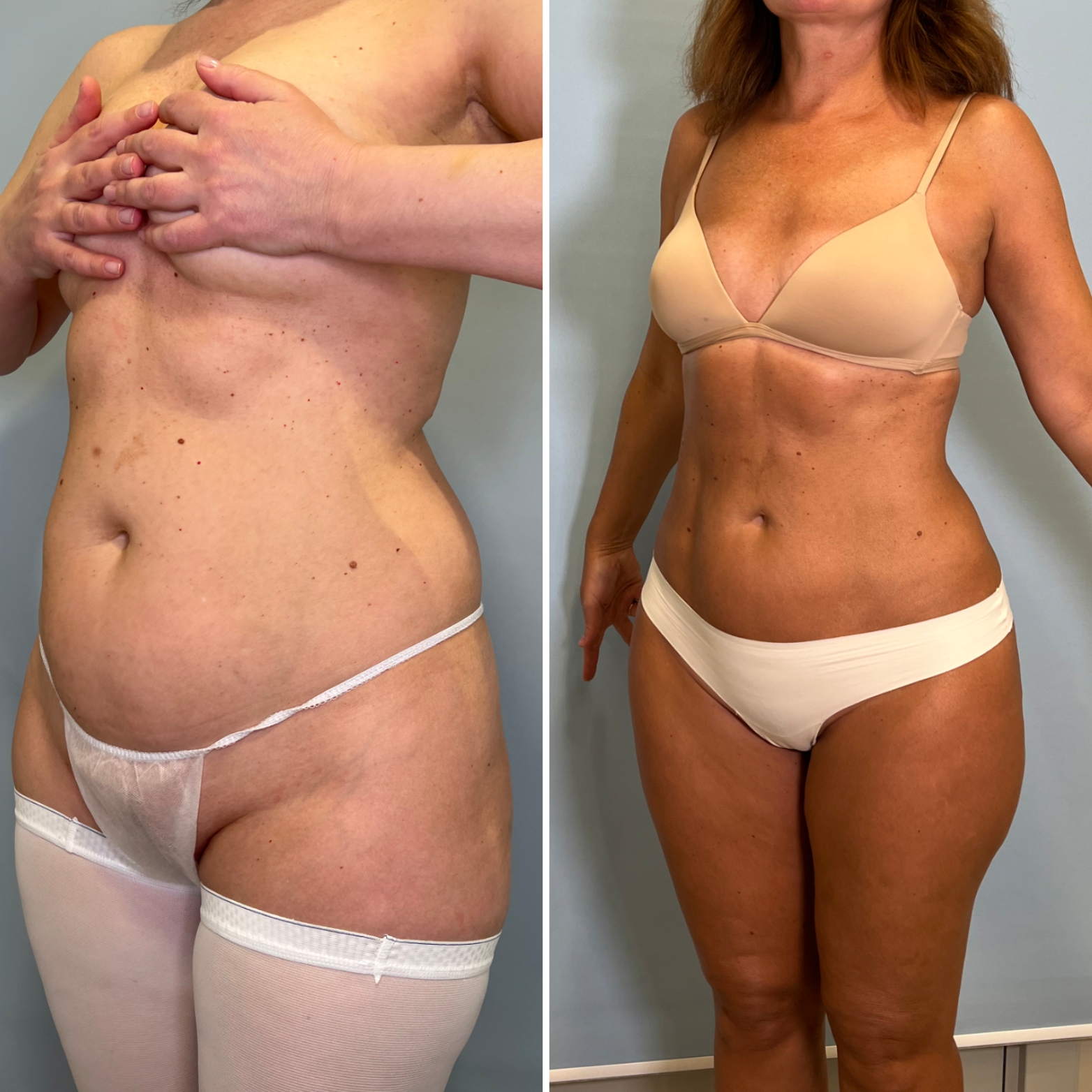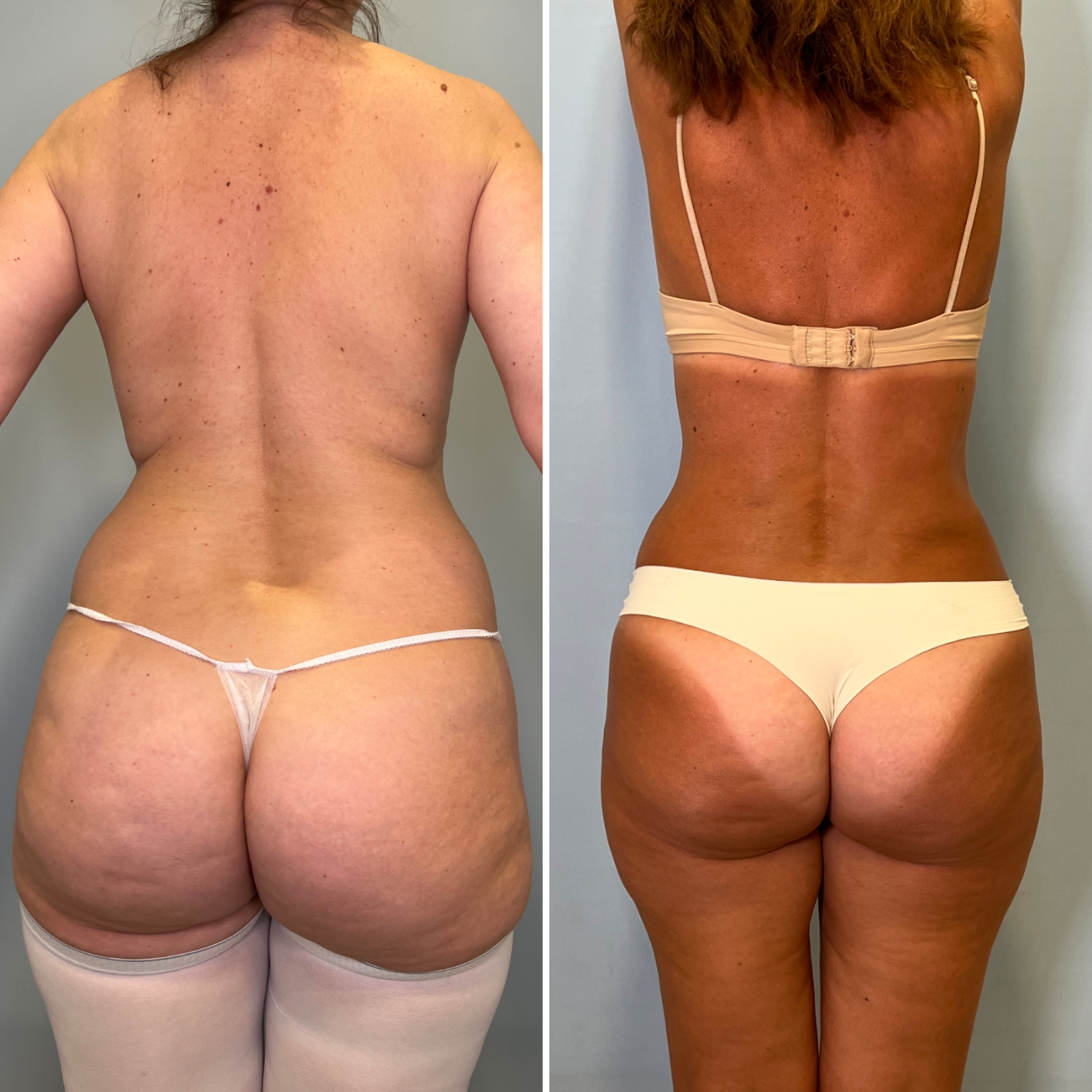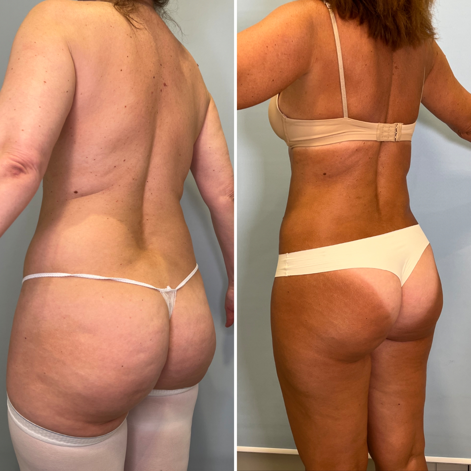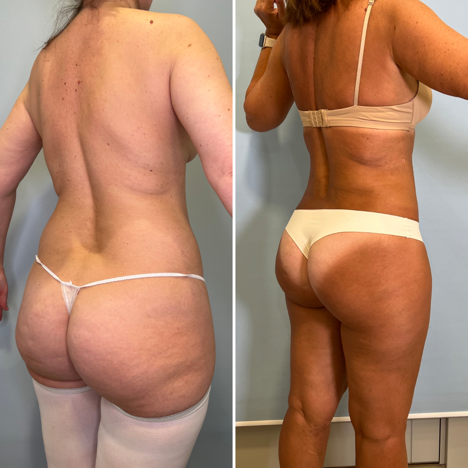 Сначала липоскульптурирование спины и талии без липофилинга ягодиц. Через 6 месяцев произведено липоскульптурирование живота. В некоторых случаях выполняю операции в 2 этапа.