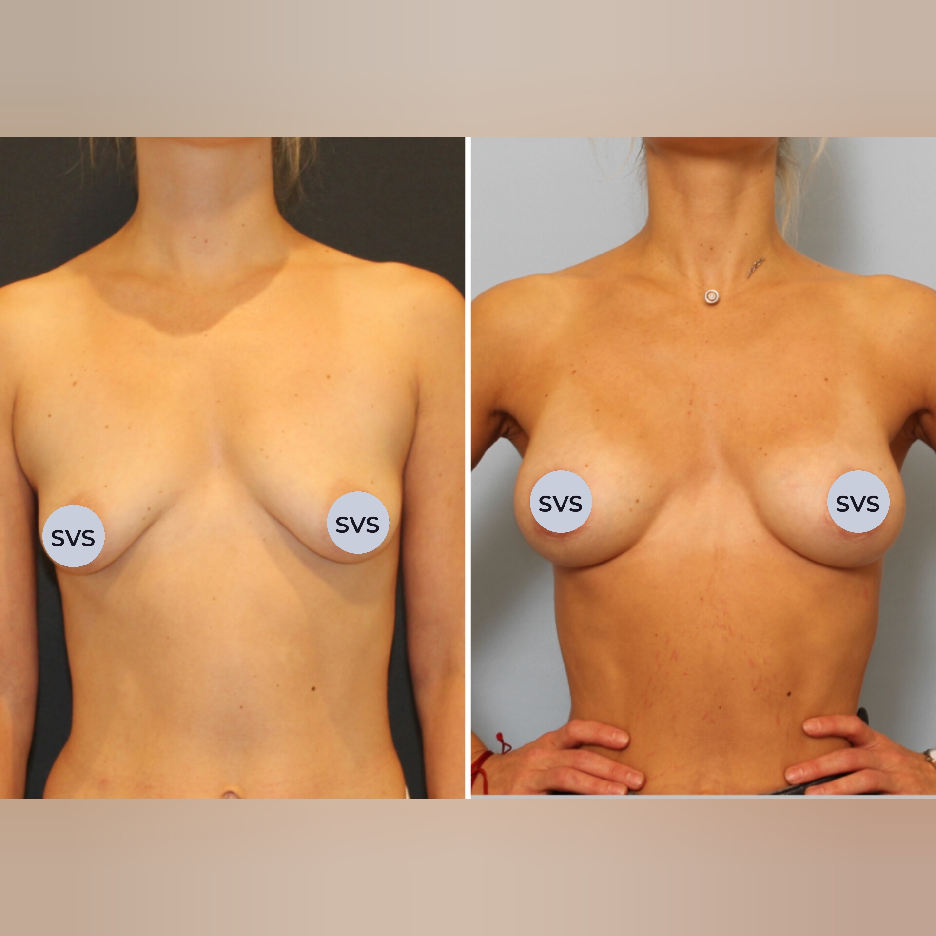 ✔ Установлены анатомические имплантаты, объемом 285 мл.