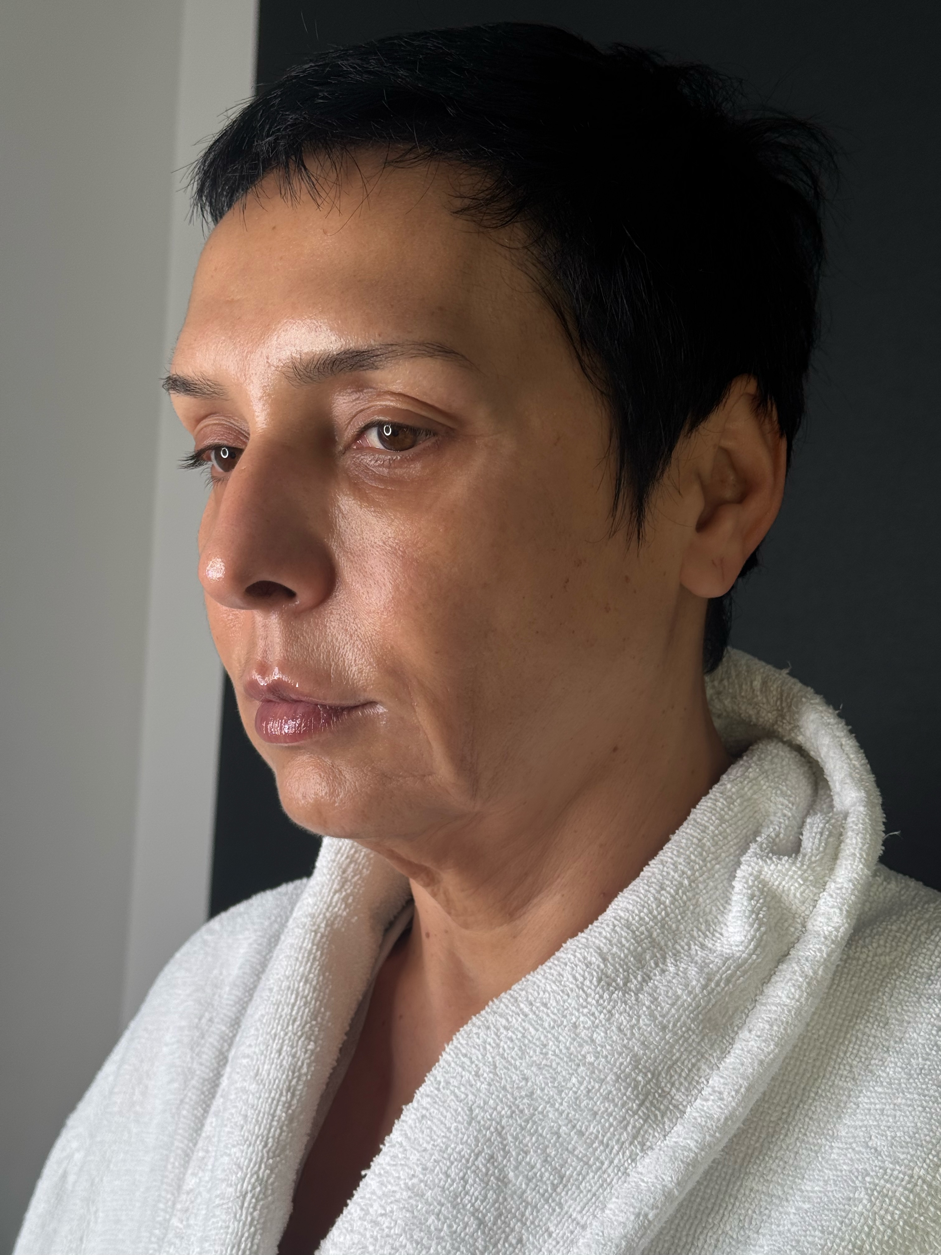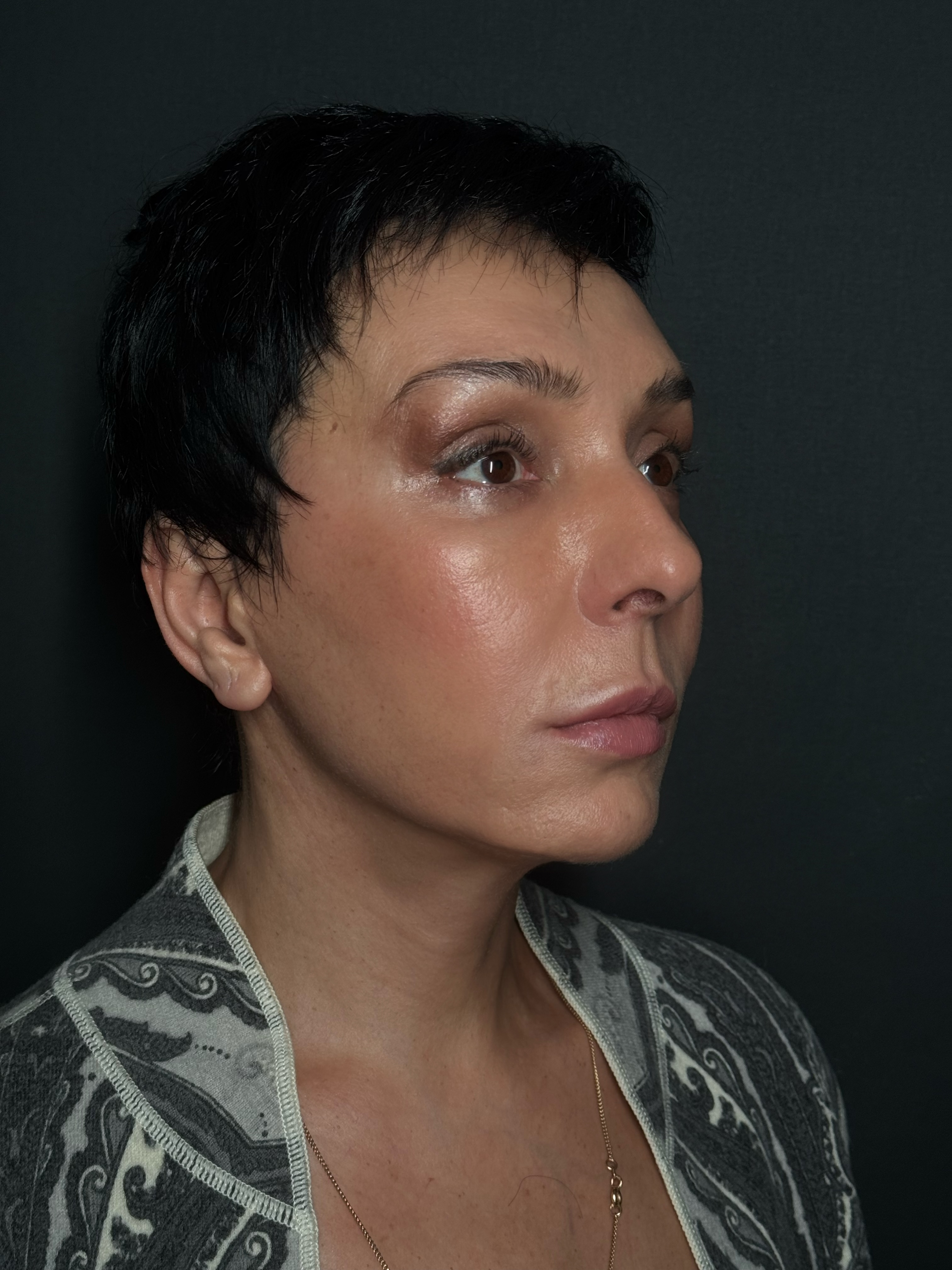 Устранили мы нависание век, брыли, поплывший контур, приподняли среднюю зону лица.