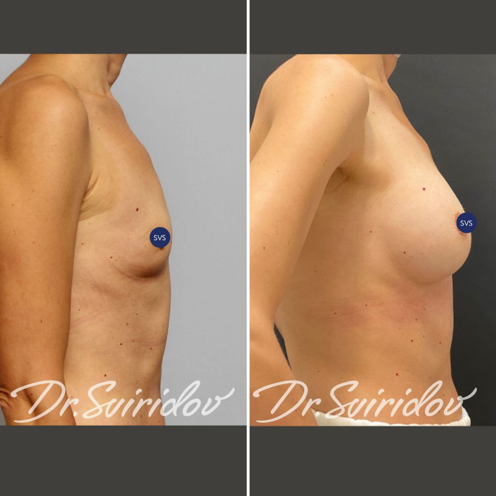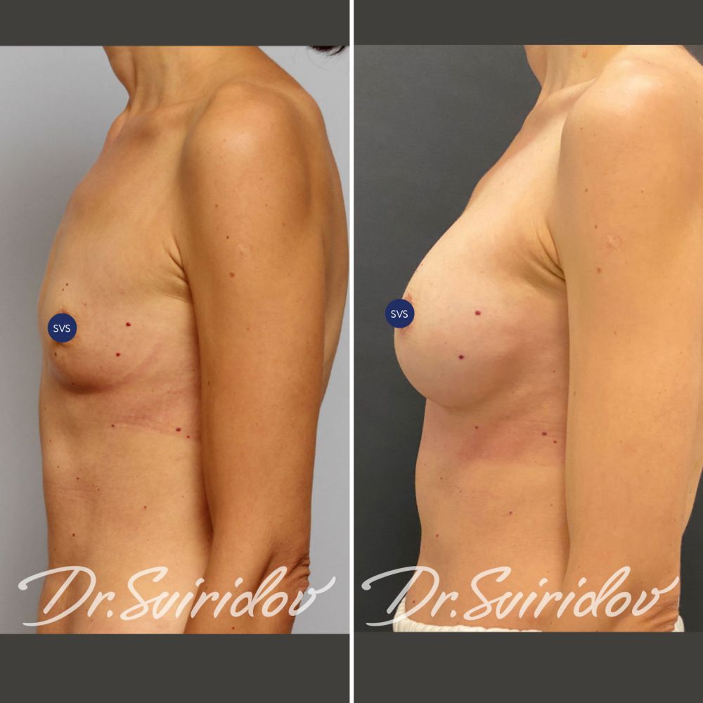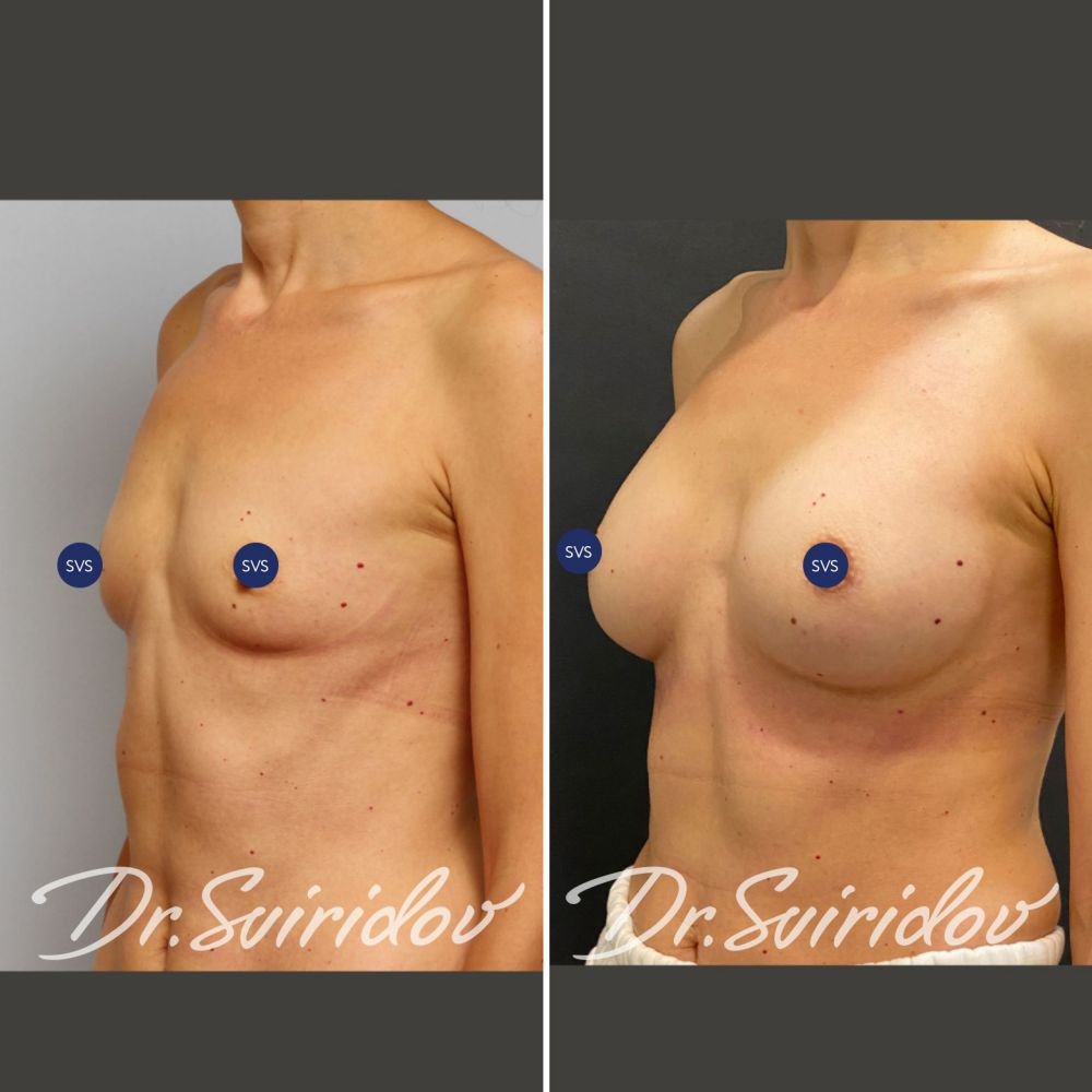 Установлены анатомические имплантаты, объём: 285 мл.