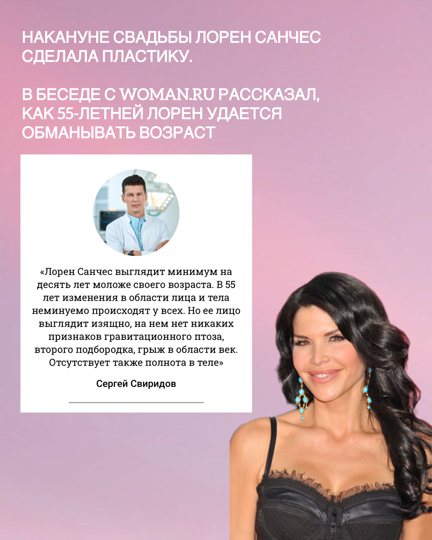Лорен Санчес выглядит минимум на десять лет моложе своего возраста. В 55 лет изменения в области лица и тела неминуемо происходят у всех. Но ее лицо выглядит изящно, на нем нет никаких признаков гравитационного птоза, второго подбородка, грыж в области век. Отсутствует также полнота в теле.