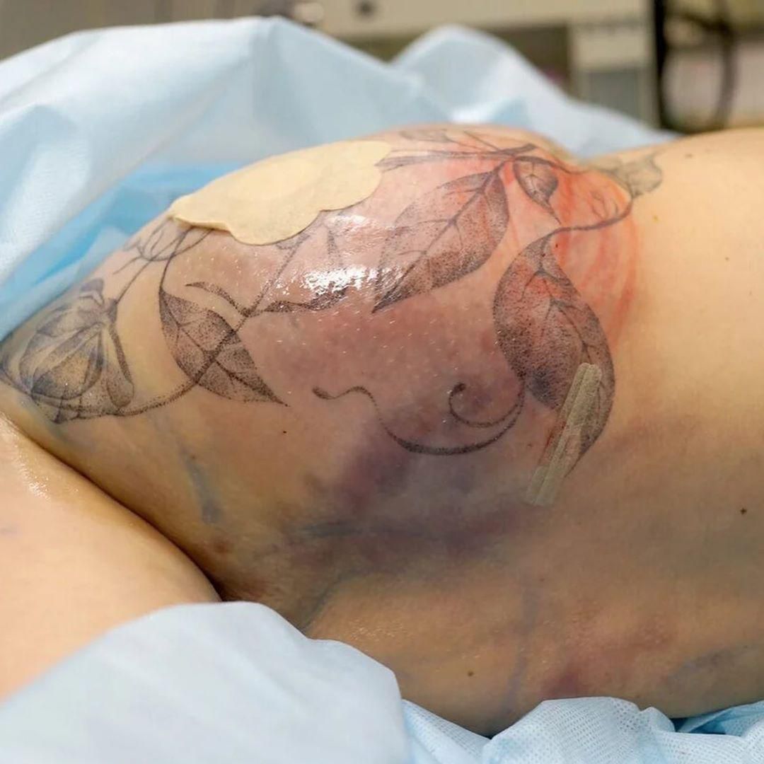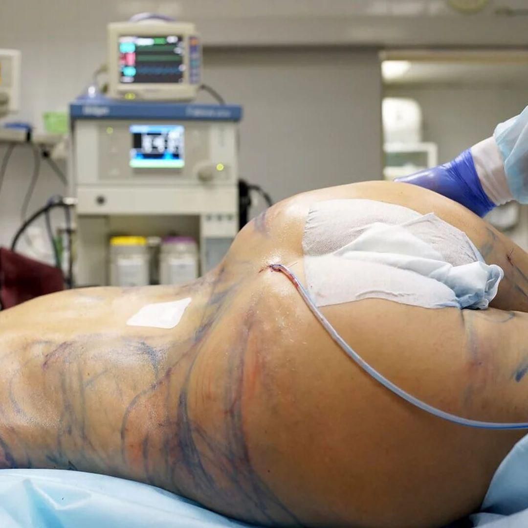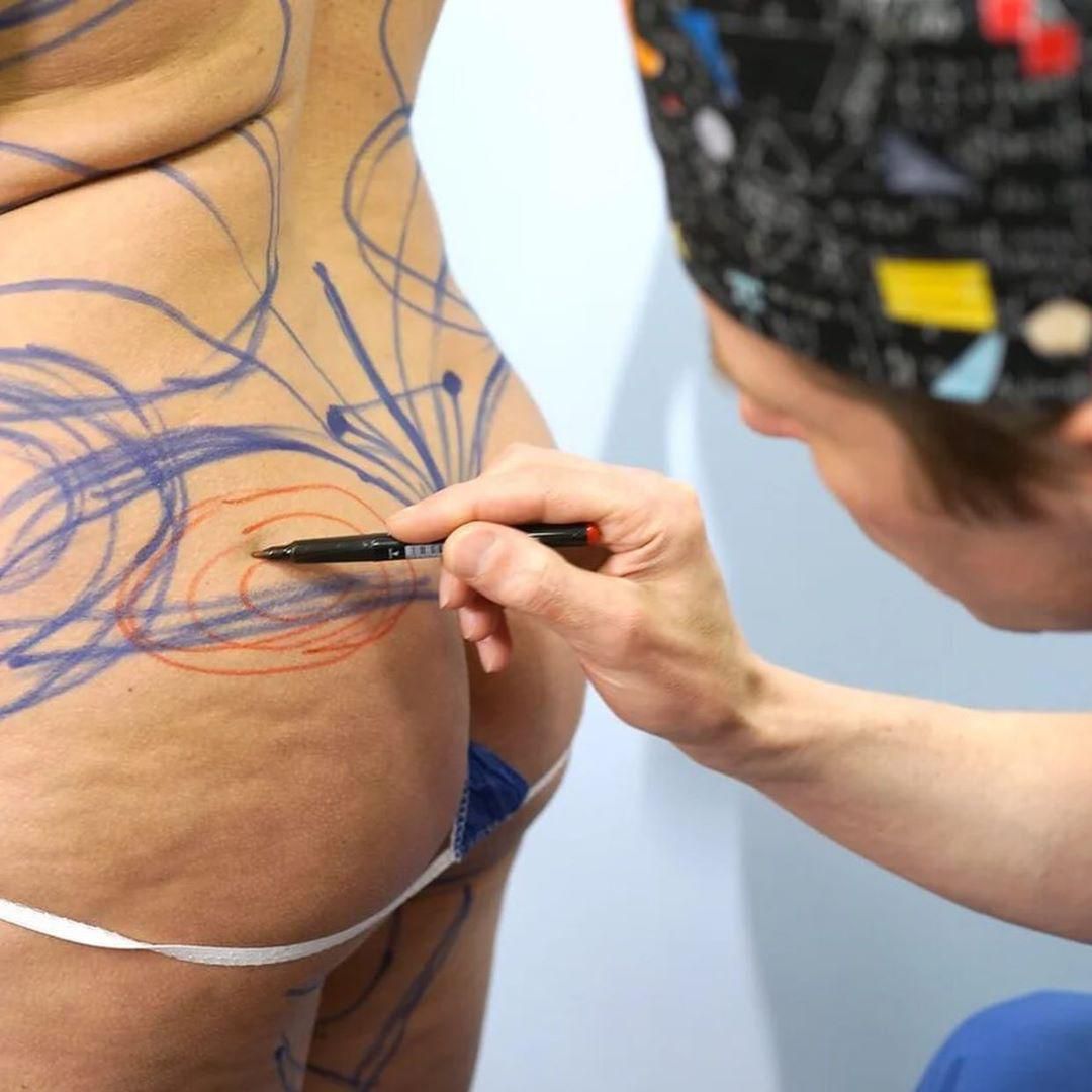 Собранным жиром мы дополнили нижнюю часть груди (провели липофилинг), исправили не совсем ровный участок. И добавили недостающий объем в область ягодиц.