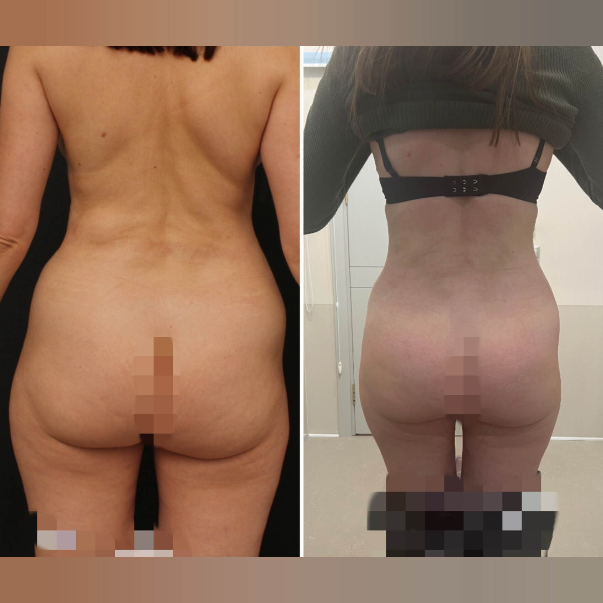 Посмотрите, как мне удалось скорректировать ей контур, выполнить липофиллинг ягодиц.