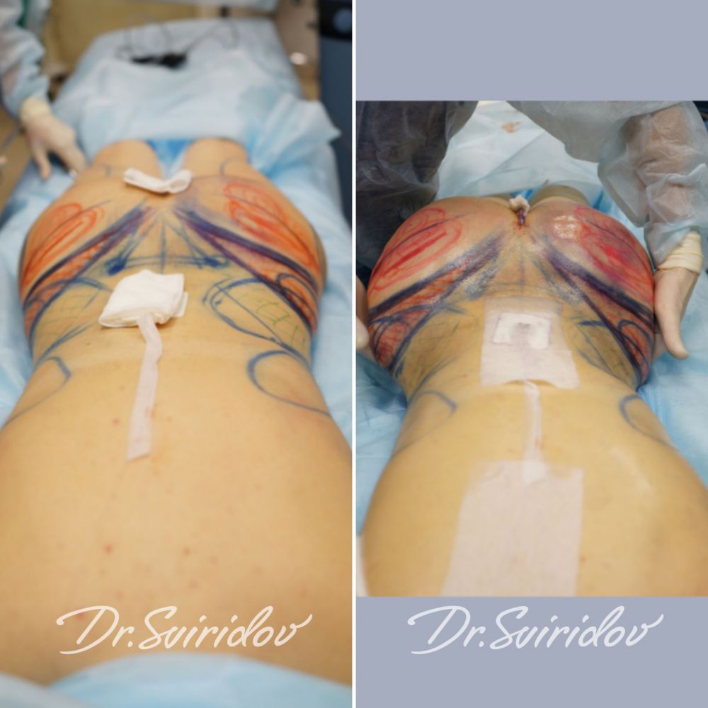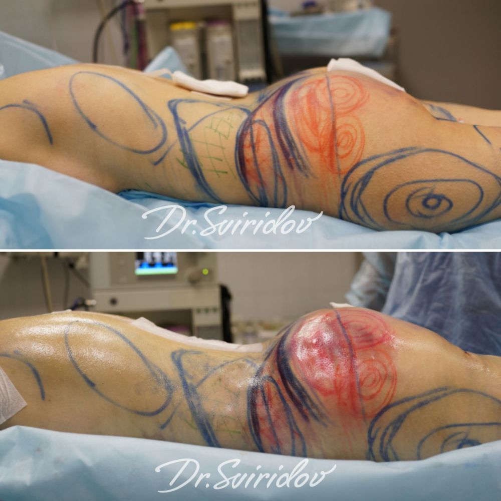 Моей пациентке выполнена липопластика тела: липопластика плеч, липофилинг ягодиц, липосакция живота, бедер и спины.