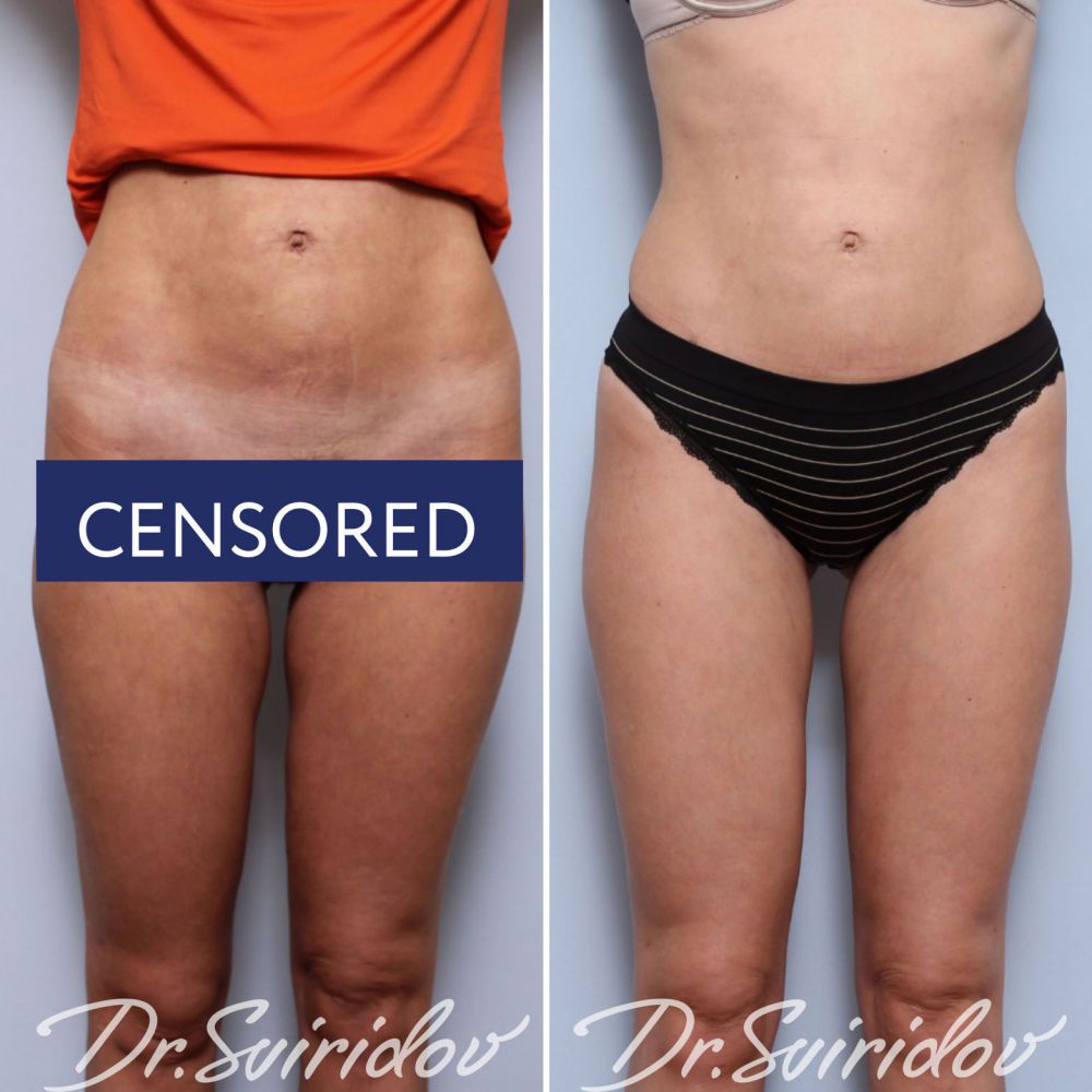 1-я пациентка — выполнена липосакция бедер внутри и коленей.