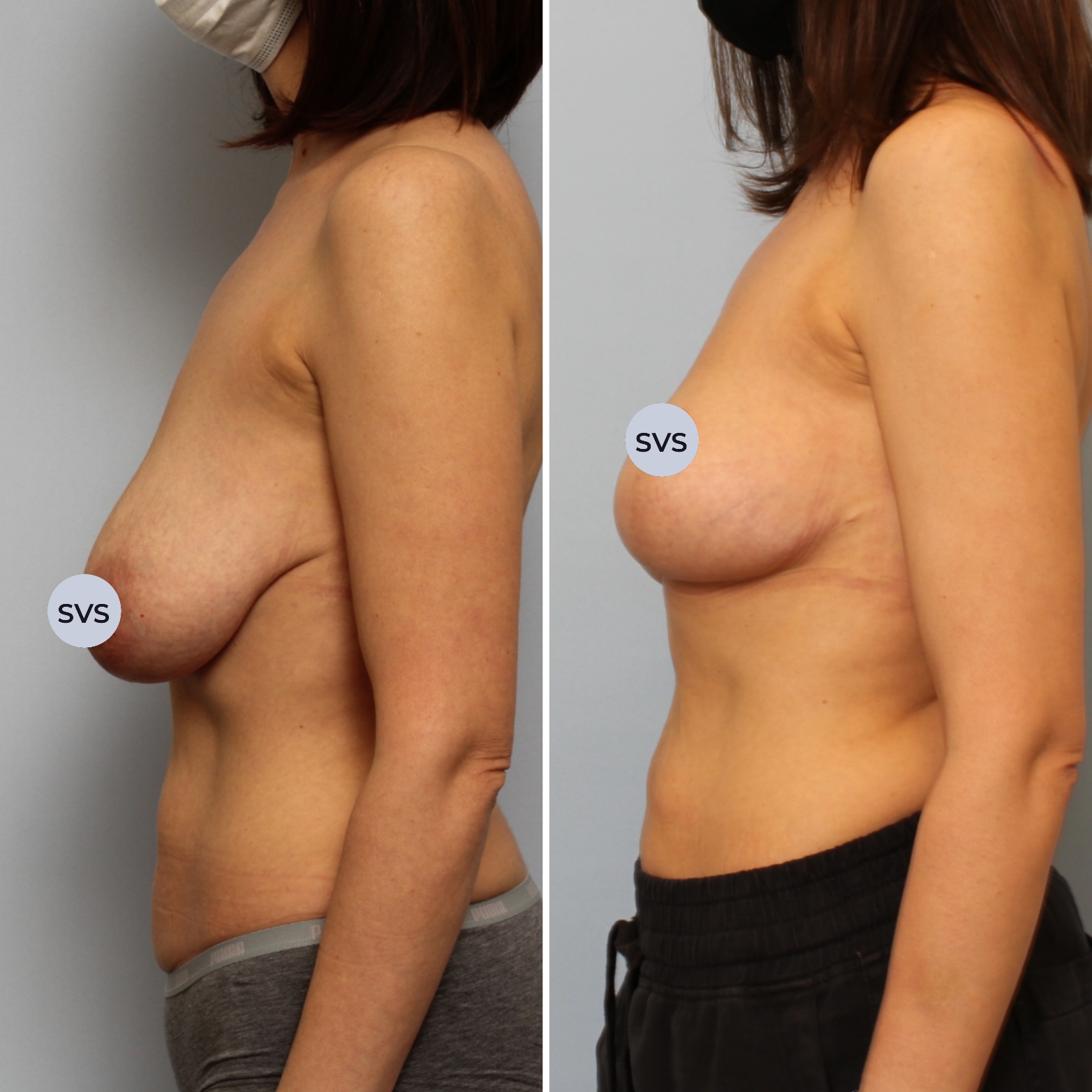 Пациентке выполнена подтяжка груди с применением специального разгрузочного шва.
