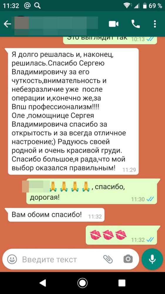 Вот такие теплые слова я получаю от моих пациентов, спасибо большое. Это очень важно и мне и тем, кто все ещё не может решиться на пластическую операцию.