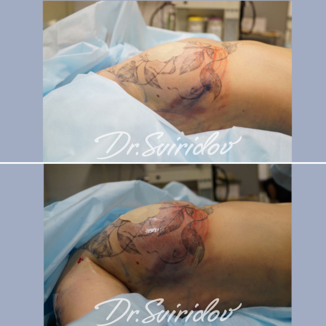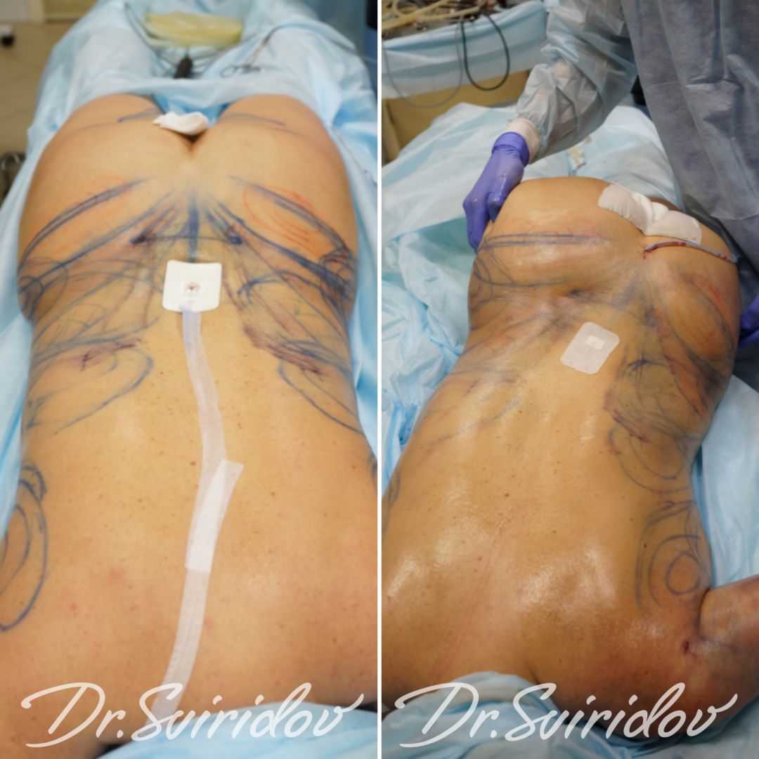 Выполнено:До операции на задней части тела мы видим среднюю складку жира. Но после операции этой складки практически совсем не стало. Покатые ягодицы мы наполнили собственным жиром и получили шикарную проекцию. Наружнюю и внутреннюю поверхность бедра мы убрали липосакцией. Выполнили липопластику плеч.