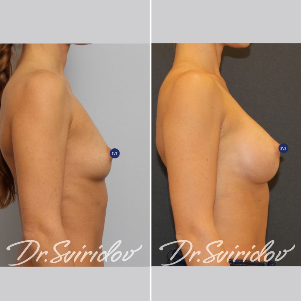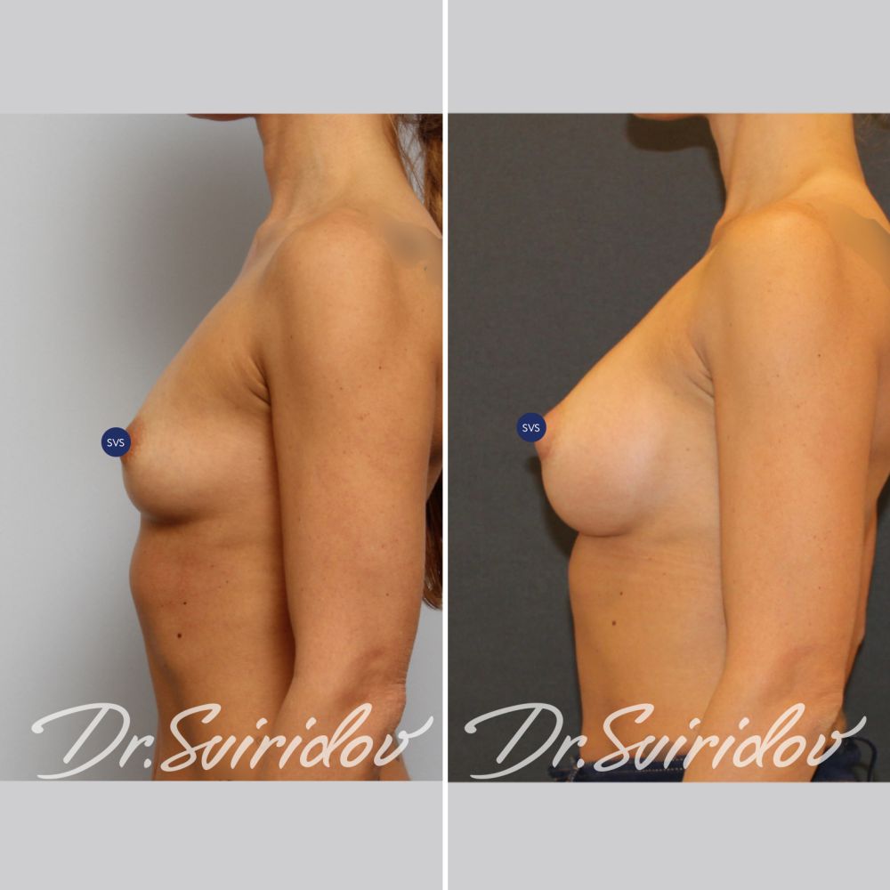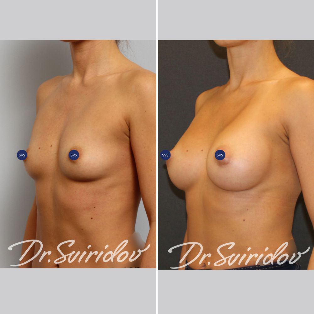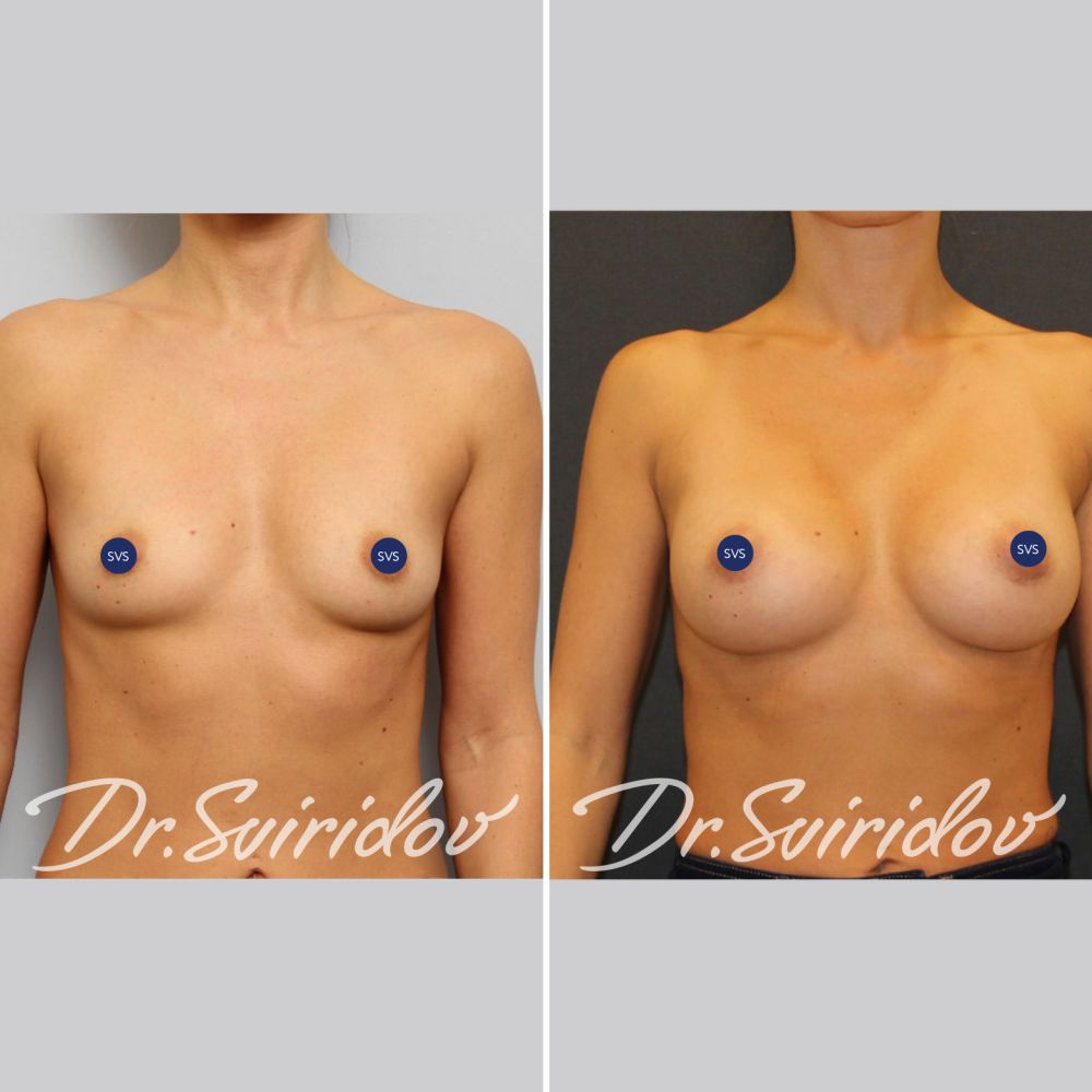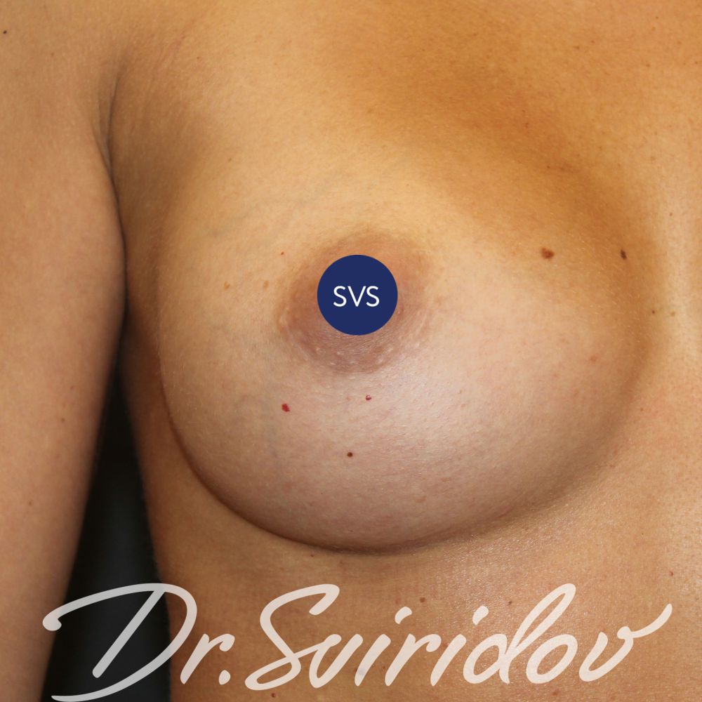 Выполнено увеличение груди по бесшовной методике (патент 2521346).