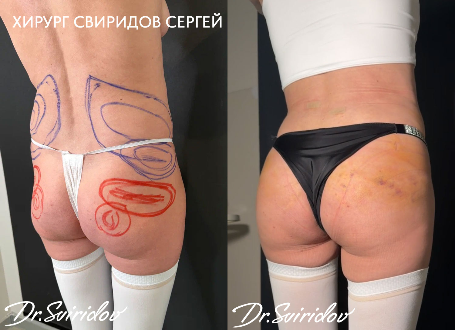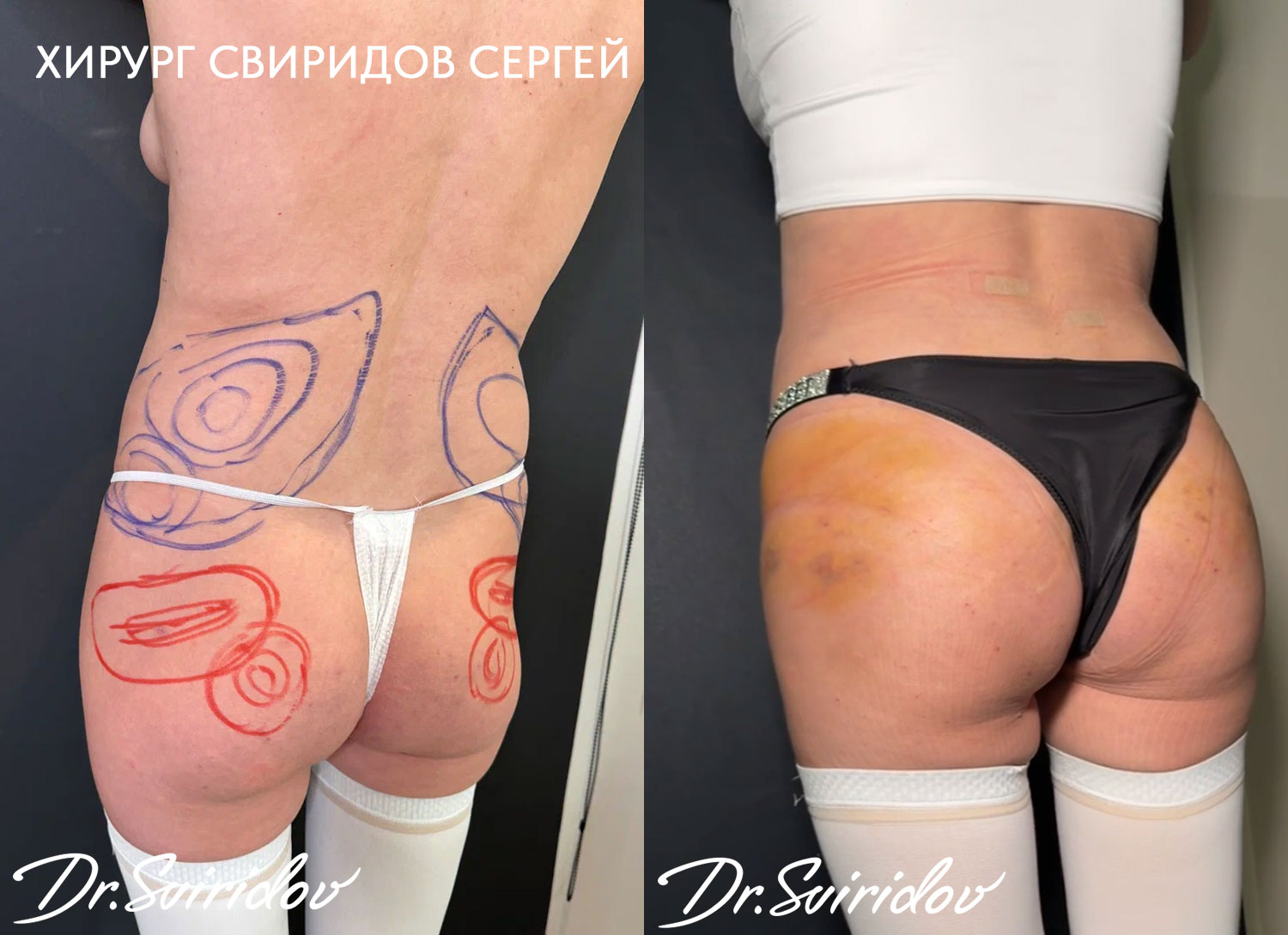 Решение о липофилинге ягодиц принимается совместно с хирургом. На консультации хирург выявляет показания и особенности проведения операции, выбирает и обсуждает вместе с пациентом желаемую форму и объем ягодиц.